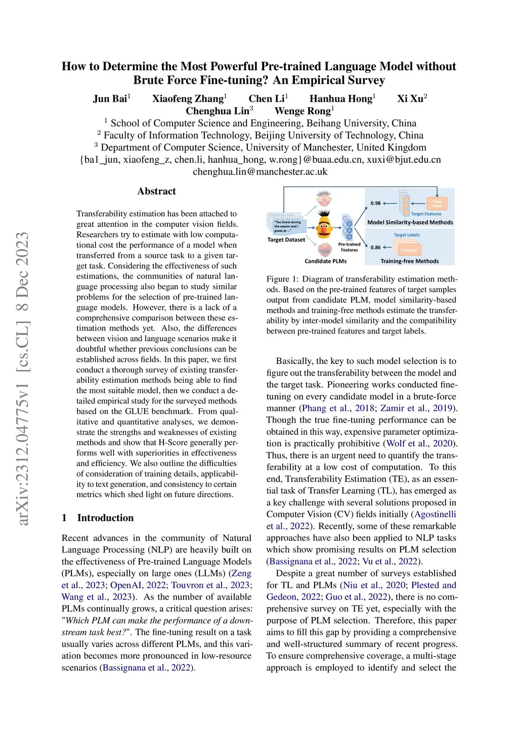 Transferability estimation has been attached to great attention in the computer vision fields. Researchers try to estimate with low computational cost the performance of a model when transferred from a source task to a given target task. Considering the effectiveness of such estimations, the communities of natural language processing also began to study similar problems for the selection of pre-trained language models. However, there is a lack of a comprehensive comparison between these estimation methods yet. Also, the differences between vision and language scenarios make it doubtful whether previous conclusions can be established across fields. In this paper, we first conduct a thorough survey of existing transferability estimation methods being able to find the most suitable model, then we conduct a detailed empirical study for the surveyed methods based on the GLUE benchmark. From qualitative and quantitative analyses, we demonstrate the strengths and weaknesses of existing methods and show that H-Score generally performs well with superiorities in effectiveness and efficiency. We also outline the difficulties of consideration of training details, applicability to text generation, and consistency to certain metrics which shed light on future directions.