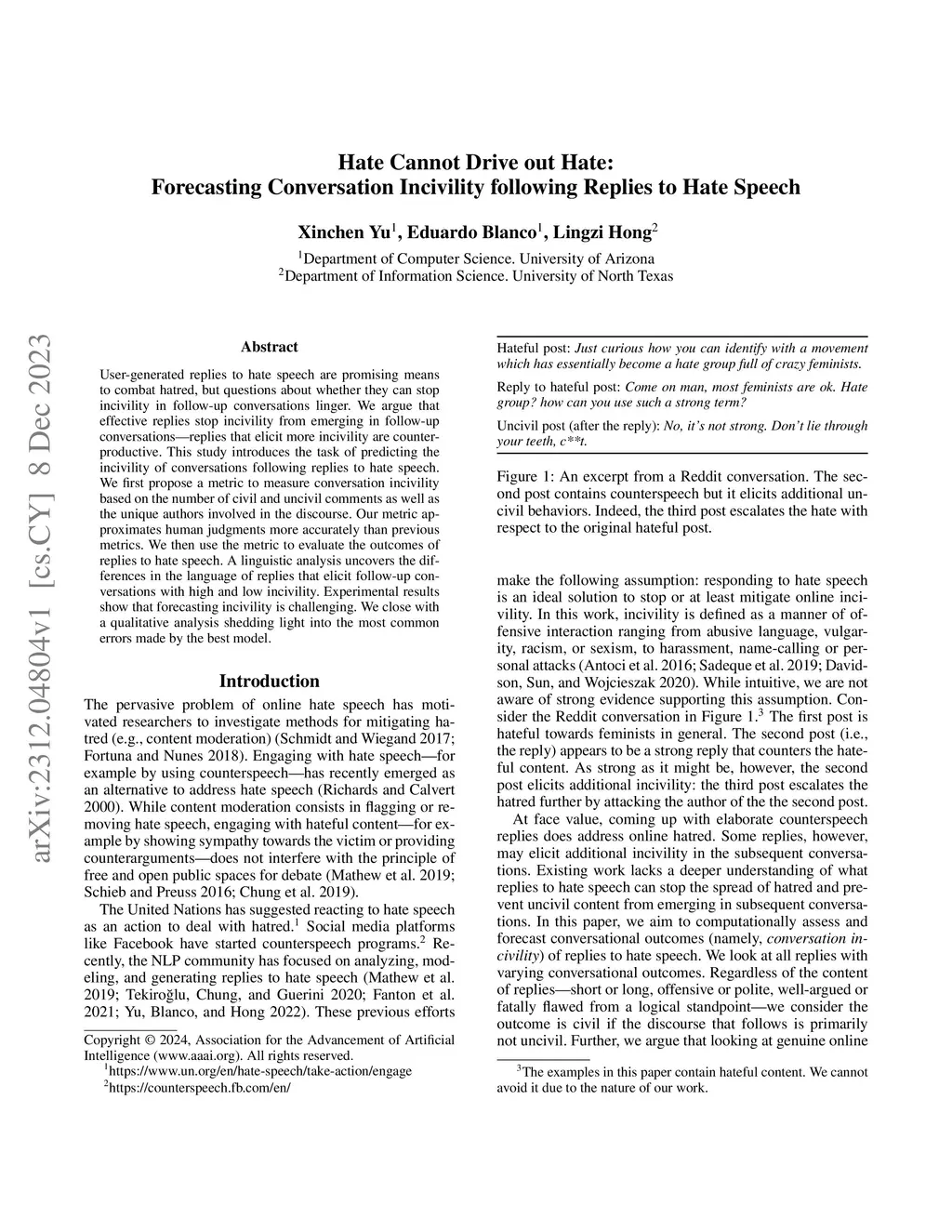 following Replies to Hate Speech