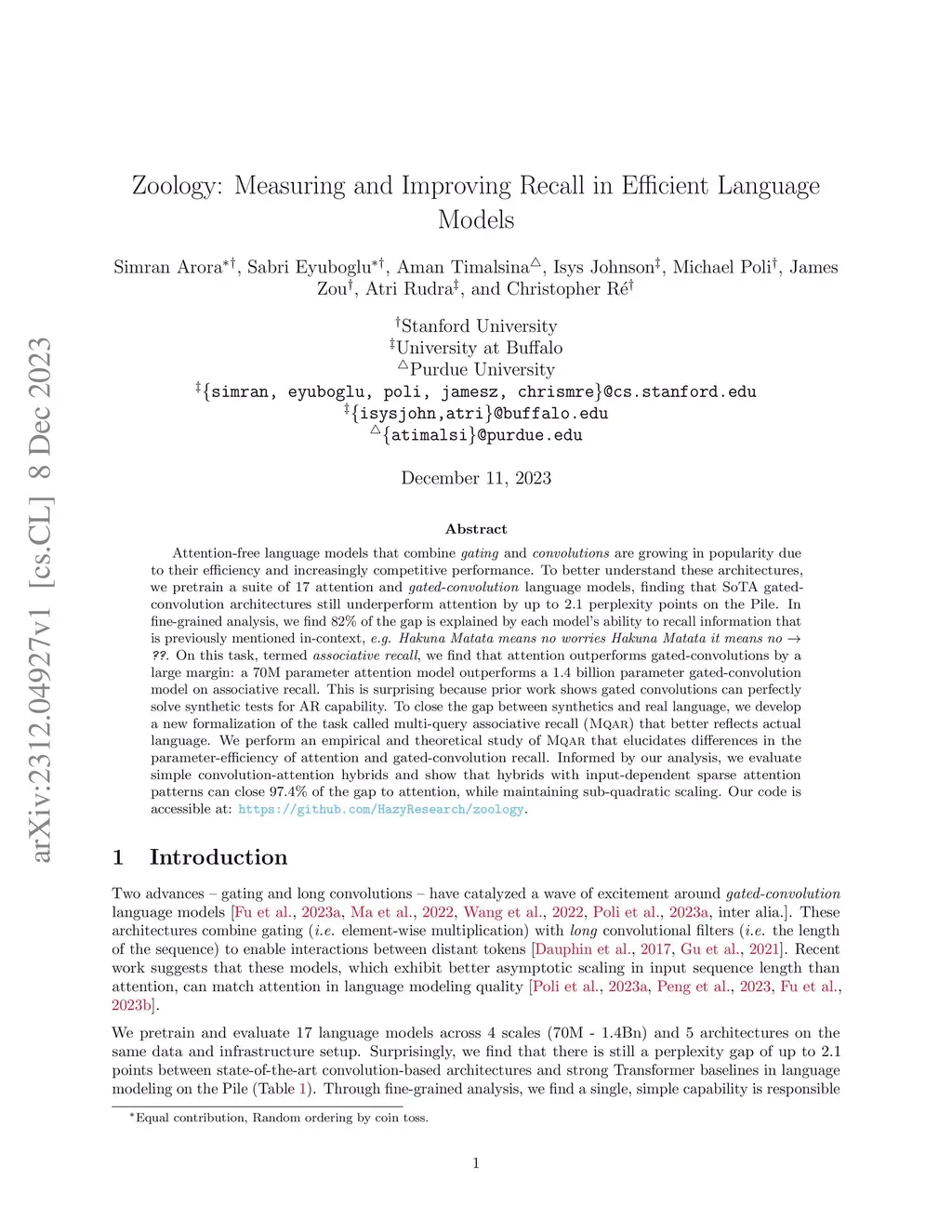 Zoology: Measuring and Improving Recall in Efficient Language Models