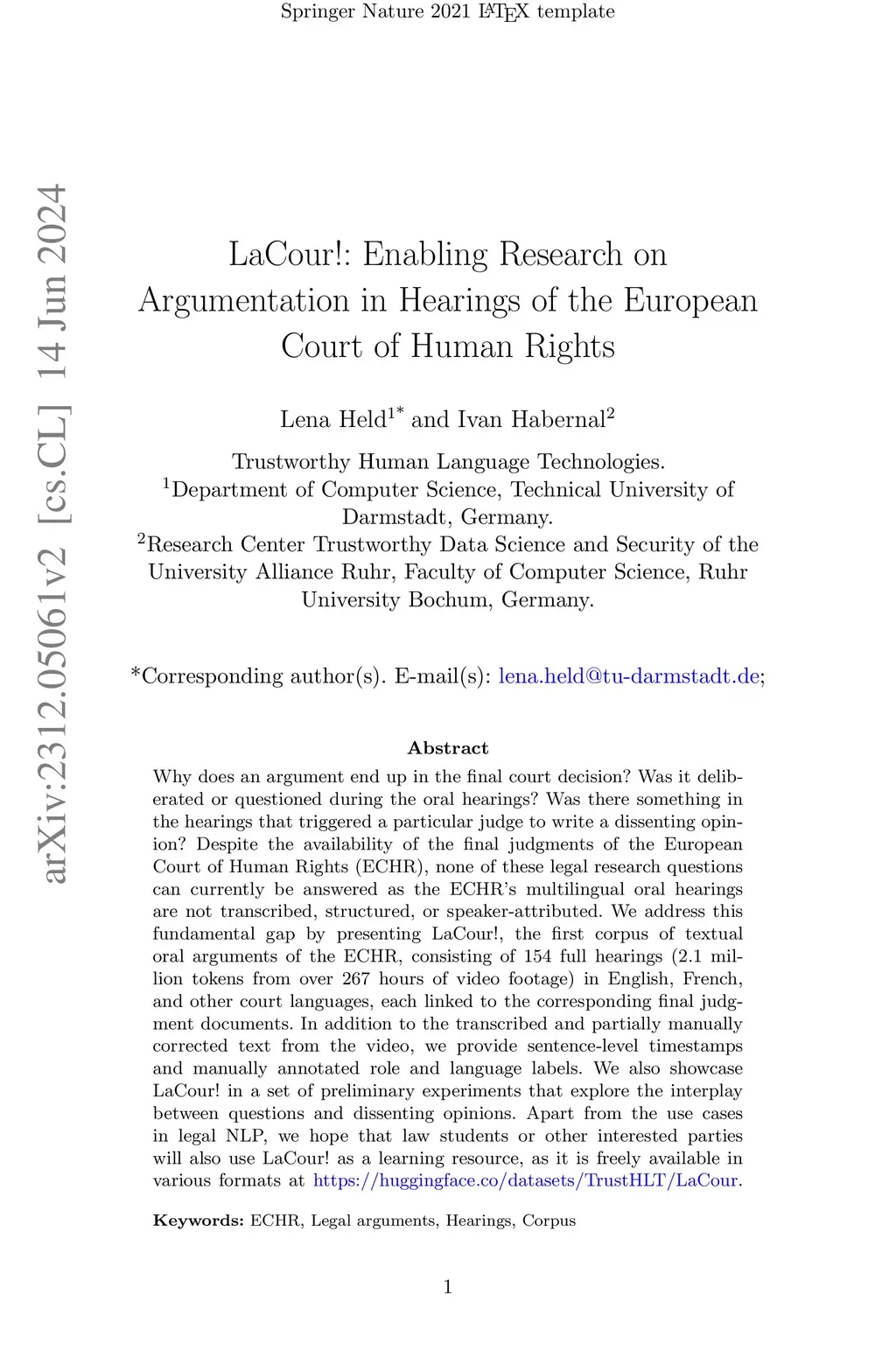 LaCour!: Enabling Research on Argumentation in Hearings of the European