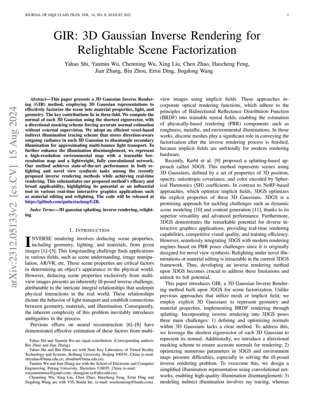 GIR: 3D Gaussian Inverse Rendering for Relightable Scene Factorization