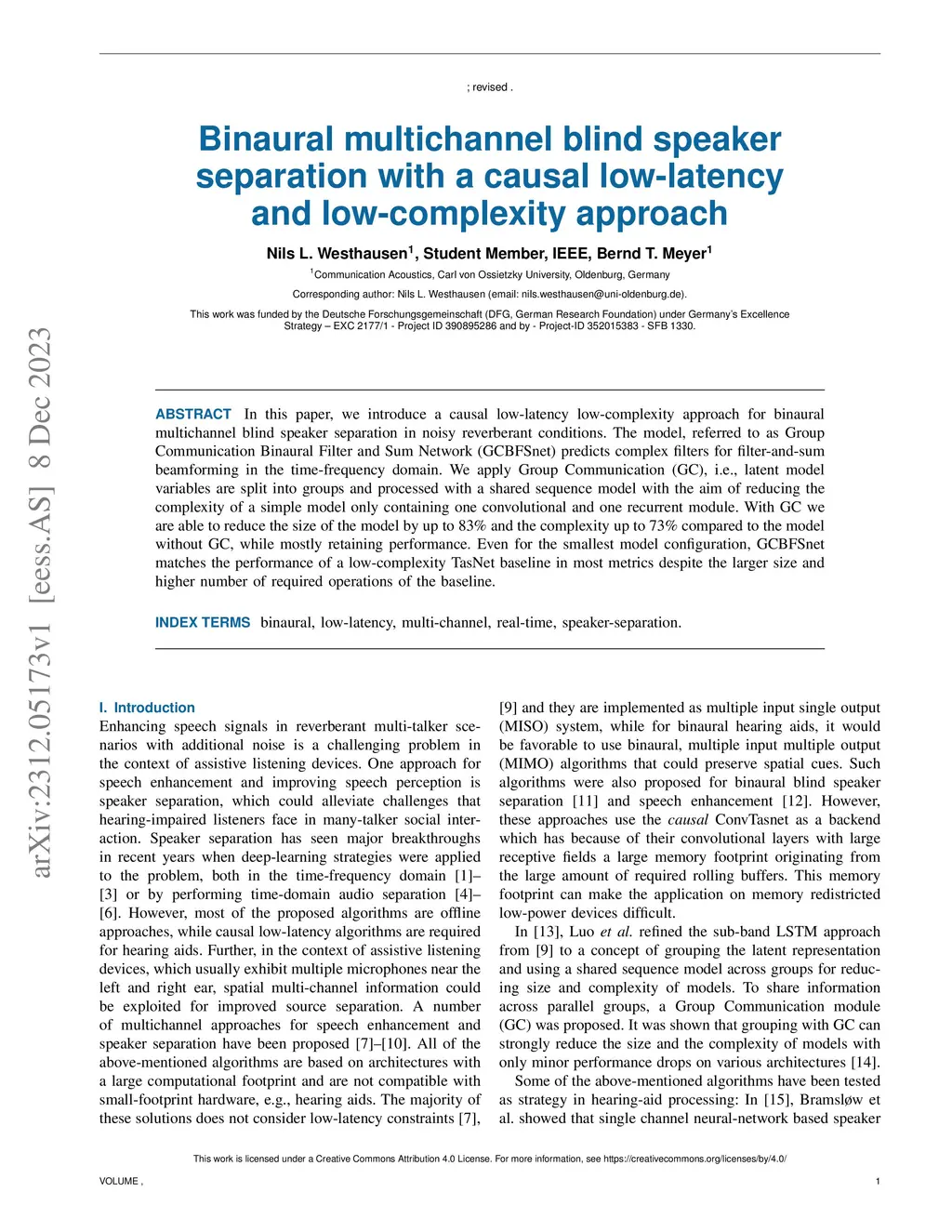 Binaural multichannel blind speaker separation with a causal low-latency