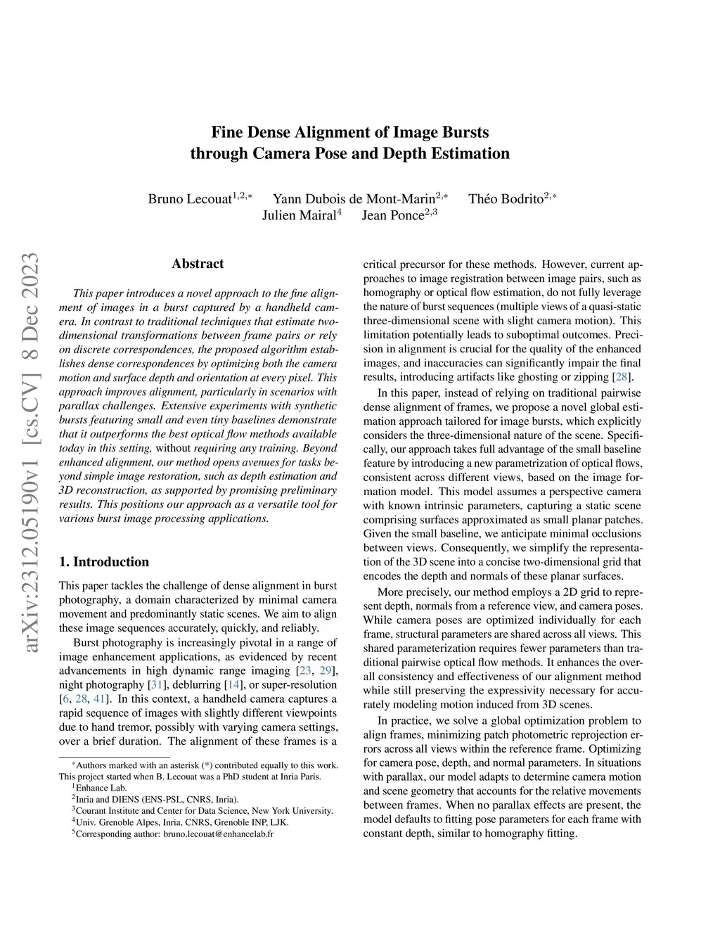 Fine Dense Alignment of Image Bursts through Camera Pose and Depth