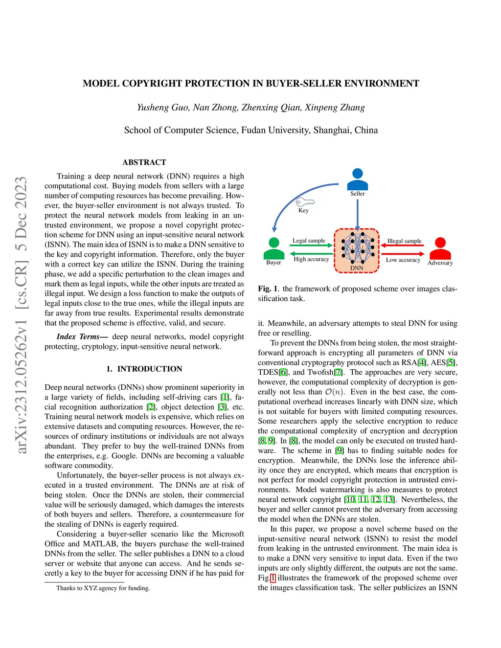 Training a deep neural network (DNN) requires a high computational cost. Buying models from sellers with a large number of computing resources has become prevailing. However, the buyer-seller environment is not always trusted. To protect the neural network models from leaking in an untrusted environment, we propose a novel copyright protection scheme for DNN using an input-sensitive neural network (ISNN). The main idea of ISNN is to make a DNN sensitive to the key and copyright information. Therefore, only the buyer with a correct key can utilize the ISNN. During the training phase, we add a specific perturbation to the clean images and mark them as legal inputs, while the other inputs are treated as illegal input. We design a loss function to make the outputs of legal inputs close to the true ones, while the illegal inputs are far away from true results. Experimental results demonstrate that the proposed scheme is effective, valid, and secure.