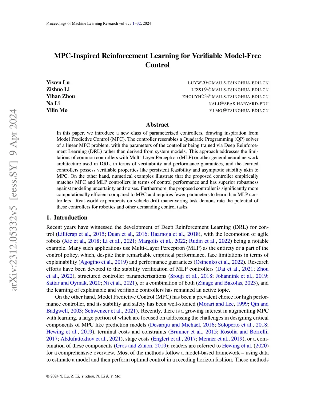 MPC-Inspired Reinforcement Learning for Verifiable Model-Free Control