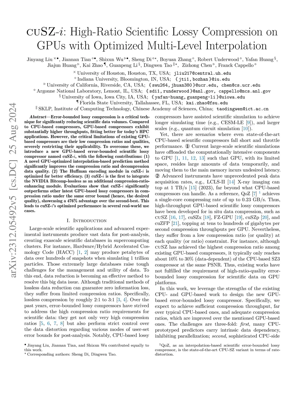 Error-bounded lossy compression is a critical technique for significantly reducing scientific data volumes. Compared to CPU-based compressors, GPU-based compressors exhibit substantially higher throughputs, fitting better for today's HPC applications. However, the critical limitations of existing GPU-based compressors are their low compression ratios and qualities, severely restricting their applicability. To overcome these, we introduce a new GPU-based error-bounded scientific lossy compressor named cuSZ-, with the following contributions: (1) A novel GPU-optimized interpolation-based prediction method significantly improves the compression ratio and decompression data quality. (2) The Huffman encoding module in cuSZ- is optimized for better efficiency. (3) cuSZ- is the first to integrate the NVIDIA Bitcomp-lossless as an additional compression-ratio-enhancing module. Evaluations show that cuSZ- significantly outperforms other latest GPU-based lossy compressors in compression ratio under the same error bound (hence, the desired quality), showcasing a 476% advantage over the second-best. This leads to cuSZ-'s optimized performance in several real-world use cases.