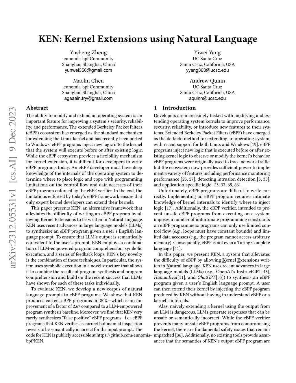 KEN: Kernel Extensions using Natural Language