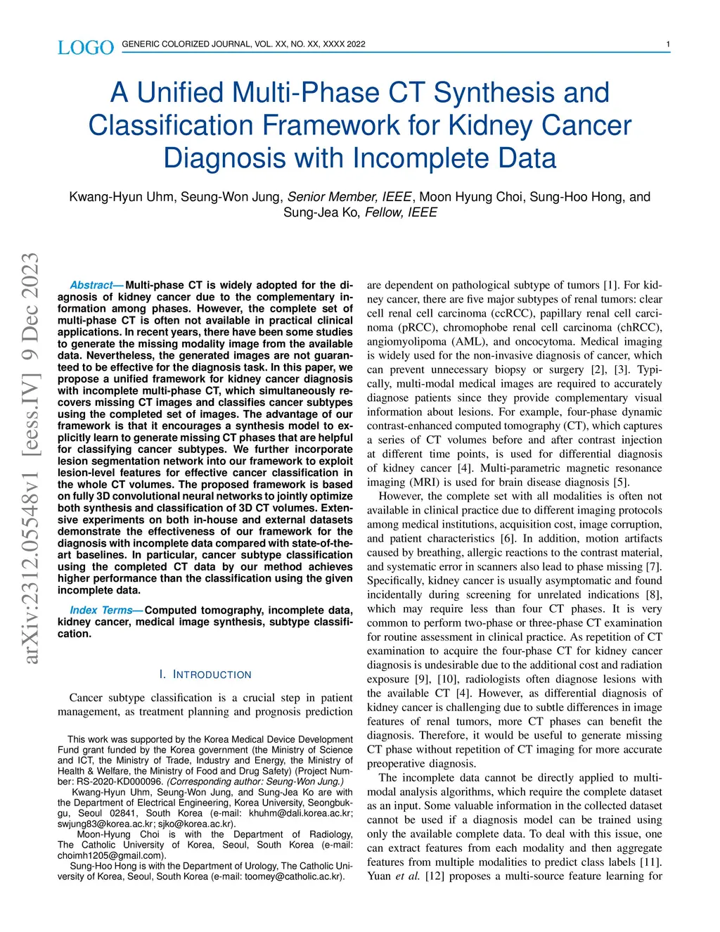 Multi-phase CT is widely adopted for the diagnosis of kidney cancer due to the complementary information among phases. However, the complete set of multi-phase CT is often not available in practical clinical applications. In recent years, there have been some studies to generate the missing modality image from the available data. Nevertheless, the generated images are not guaranteed to be effective for the diagnosis task. In this paper, we propose a unified framework for kidney cancer diagnosis with incomplete multi-phase CT, which simultaneously recovers missing CT images and classifies cancer subtypes using the completed set of images. The advantage of our framework is that it encourages a synthesis model to explicitly learn to generate missing CT phases that are helpful for classifying cancer subtypes. We further incorporate lesion segmentation network into our framework to exploit lesion-level features for effective cancer classification in the whole CT volumes. The proposed framework is based on fully 3D convolutional neural networks to jointly optimize both synthesis and classification of 3D CT volumes. Extensive experiments on both in-house and external datasets demonstrate the effectiveness of our framework for the diagnosis with incomplete data compared with state-of-the-art baselines. In particular, cancer subtype classification using the completed CT data by our method achieves higher performance than the classification using the given incomplete data.
