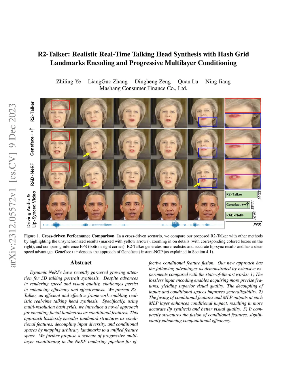 R2-Talker: Realistic Real-Time Talking Head Synthesis with Hash Grid