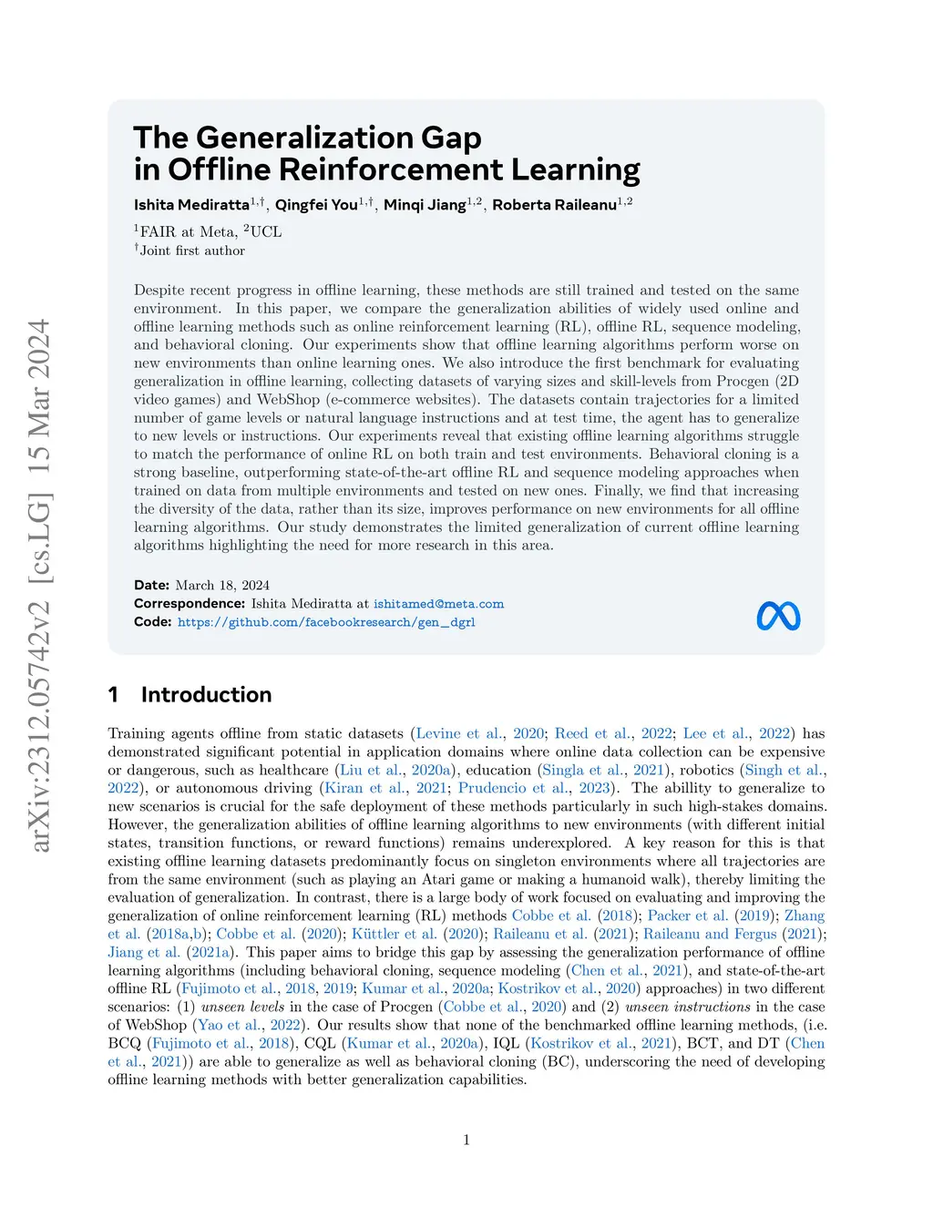 The Generalization Gap in Offline Reinforcement Learning