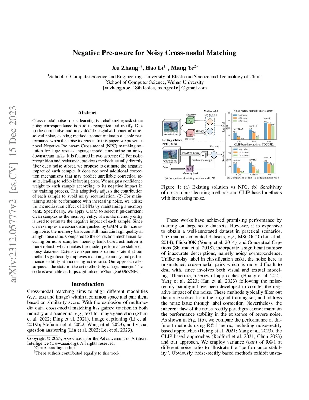 Negative Pre-aware for Noisy Cross-modal Matching