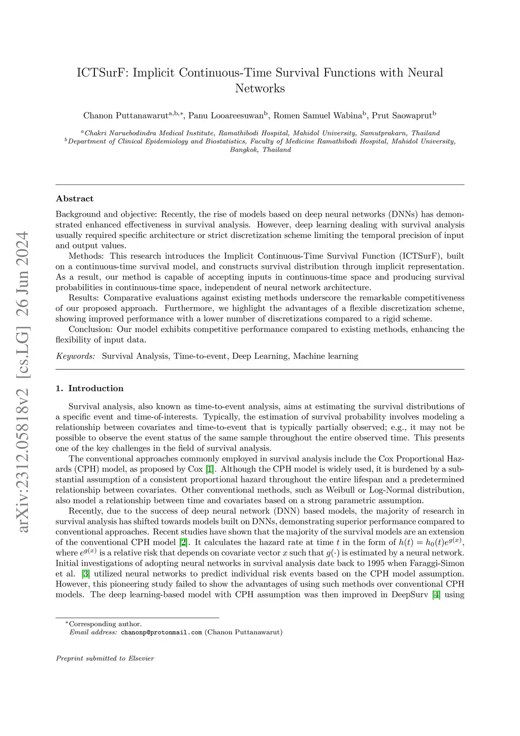 ICTSurF: Implicit Continuous-Time Survival Functions with Neural