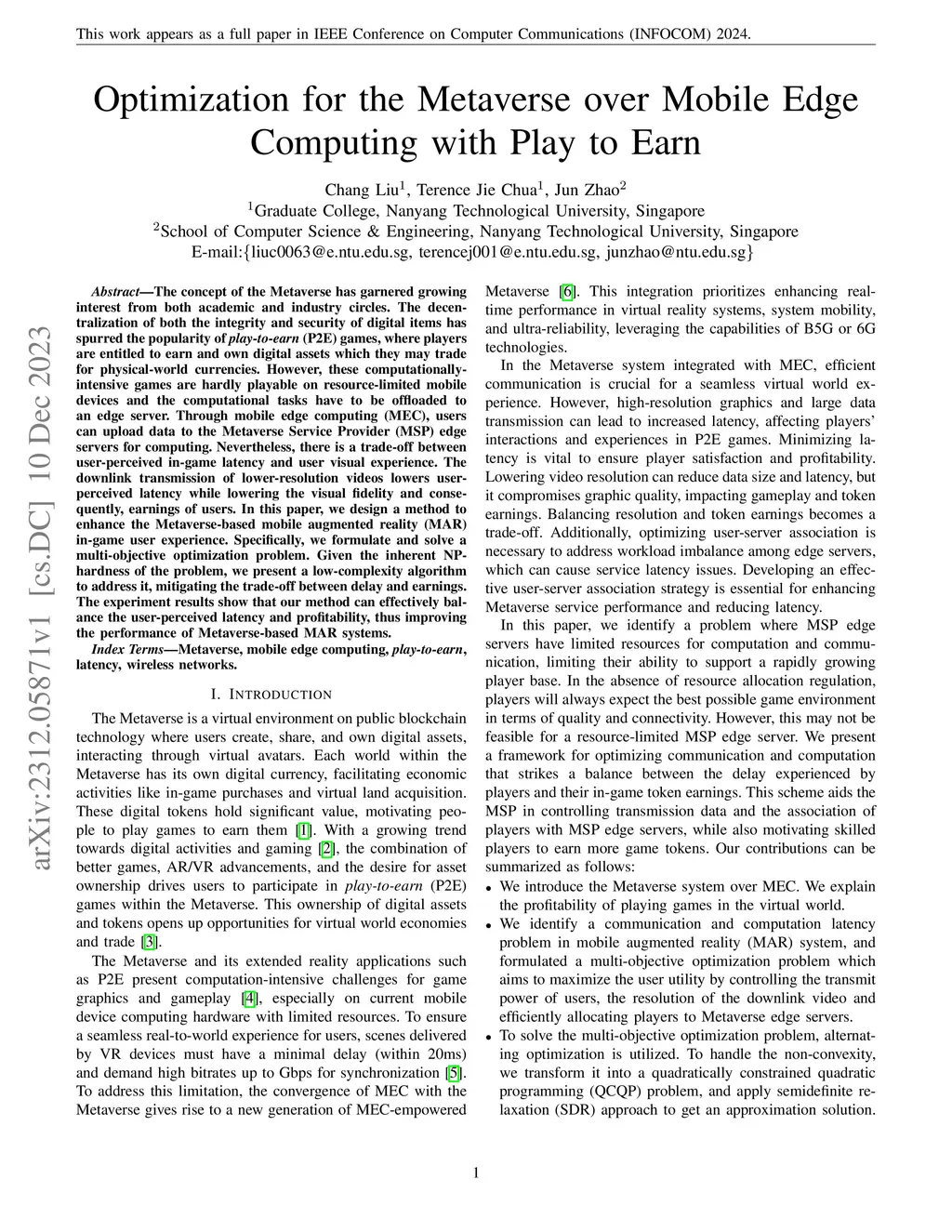 Optimization for the Metaverse over Mobile Edge Computing with Play to