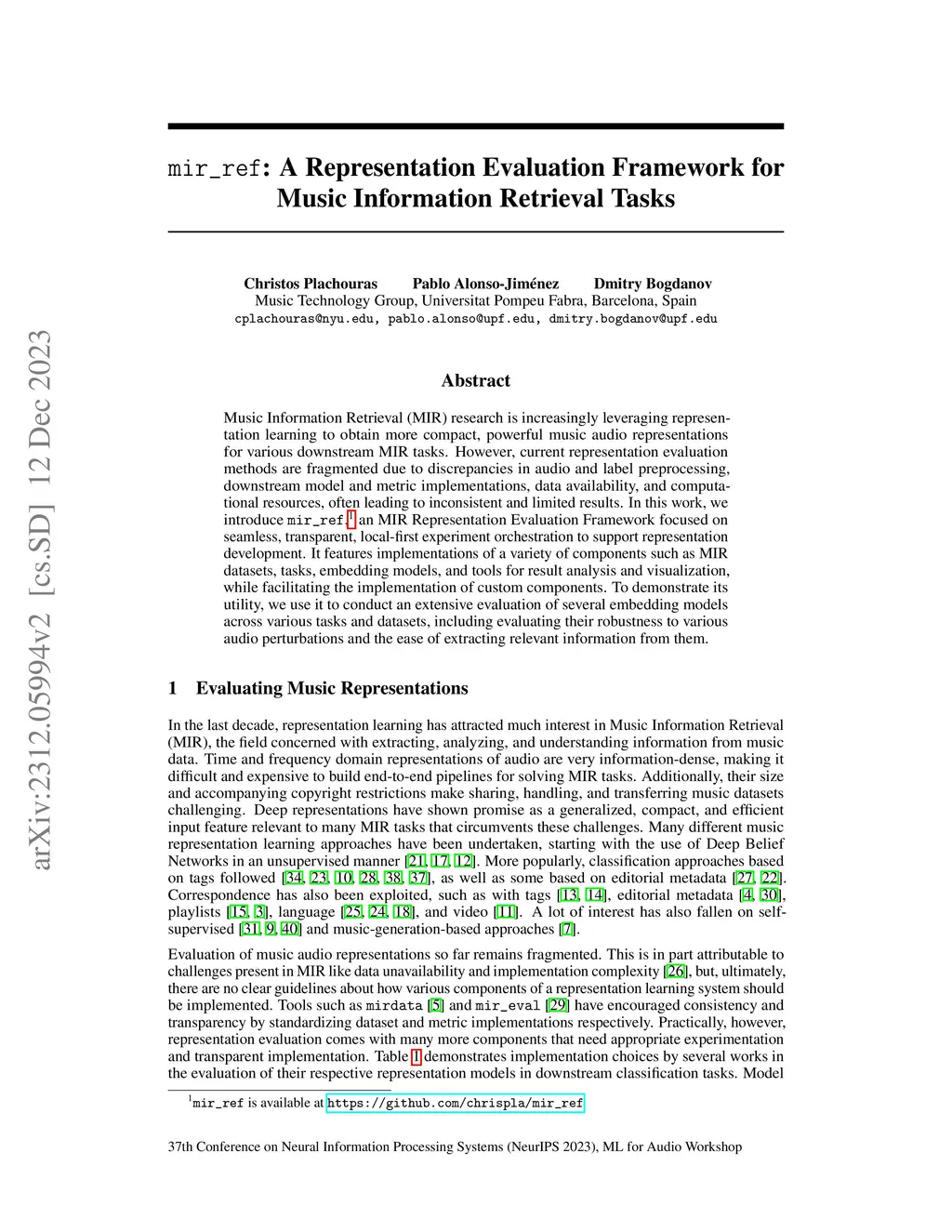 mir_ref: A Representation Evaluation Framework for Music Information
