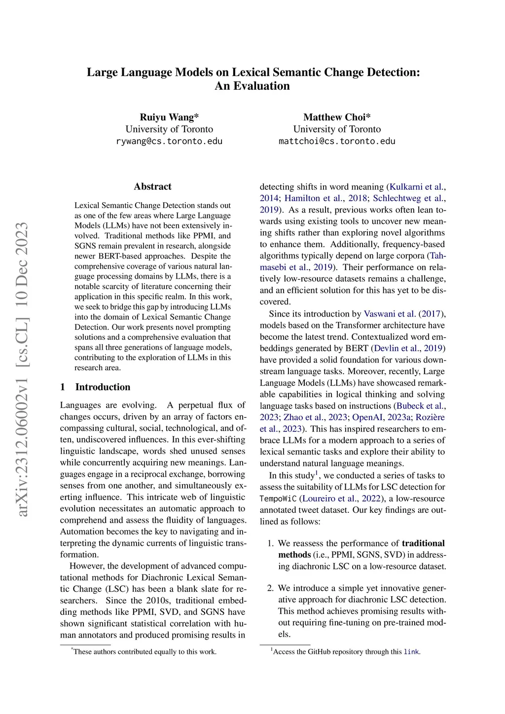Lexical Semantic Change Detection stands out as one of the few areas where Large Language Models (LLMs) have not been extensively involved. Traditional methods like PPMI, and SGNS remain prevalent in research, alongside newer BERT-based approaches. Despite the comprehensive coverage of various natural language processing domains by LLMs, there is a notable scarcity of literature concerning their application in this specific realm. In this work, we seek to bridge this gap by introducing LLMs into the domain of Lexical Semantic Change Detection. Our work presents novel prompting solutions and a comprehensive evaluation that spans all three generations of language models, contributing to the exploration of LLMs in this research area.