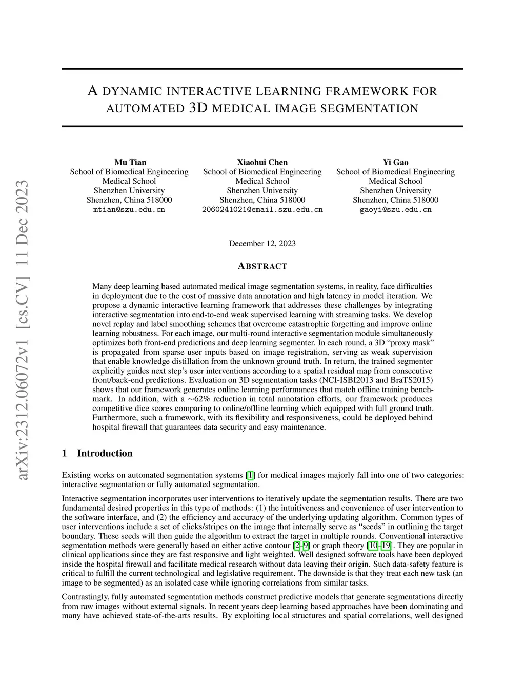 A dynamic interactive learning framework for automated 3D medical image