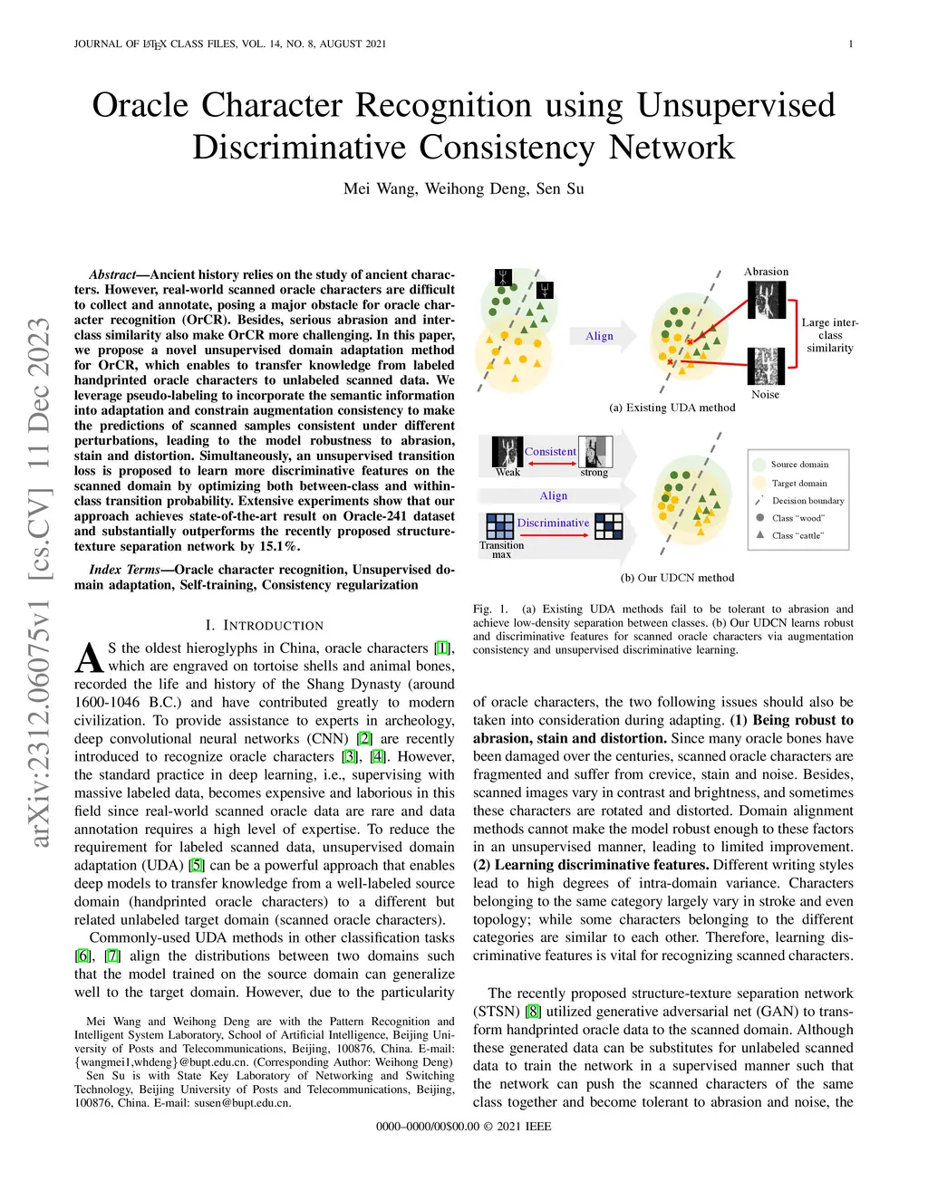 Ancient history relies on the study of ancient characters. However, real-world scanned oracle characters are difficult to collect and annotate, posing a major obstacle for oracle character recognition (OrCR). Besides, serious abrasion and inter-class similarity also make OrCR more challenging. In this paper, we propose a novel unsupervised domain adaptation method for OrCR, which enables to transfer knowledge from labeled handprinted oracle characters to unlabeled scanned data. We leverage pseudo-labeling to incorporate the semantic information into adaptation and constrain augmentation consistency to make the predictions of scanned samples consistent under different perturbations, leading to the model robustness to abrasion, stain and distortion. Simultaneously, an unsupervised transition loss is proposed to learn more discriminative features on the scanned domain by optimizing both between-class and within-class transition probability. Extensive experiments show that our approach achieves state-of-the-art result on Oracle-241 dataset and substantially outperforms the recently proposed structure-texture separation network by 15.1%.