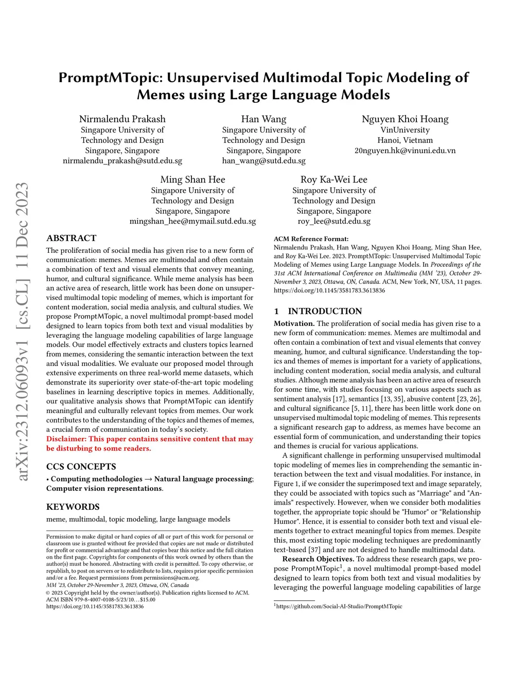 PromptMTopic: Unsupervised Multimodal Topic Modeling of Memes using