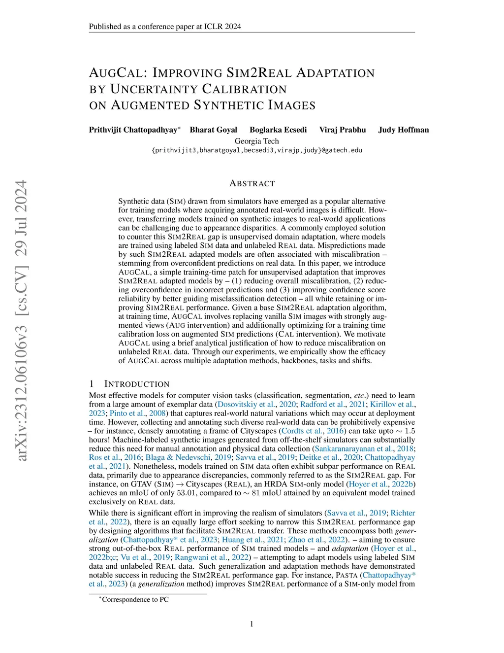 AUGCAL: Improving Sim2Real Adaptation by Uncertainty Calibration on