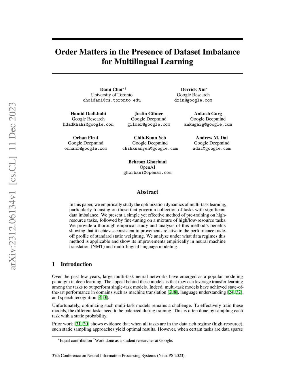 Order Matters in the Presence of Dataset Imbalance for Multilingual