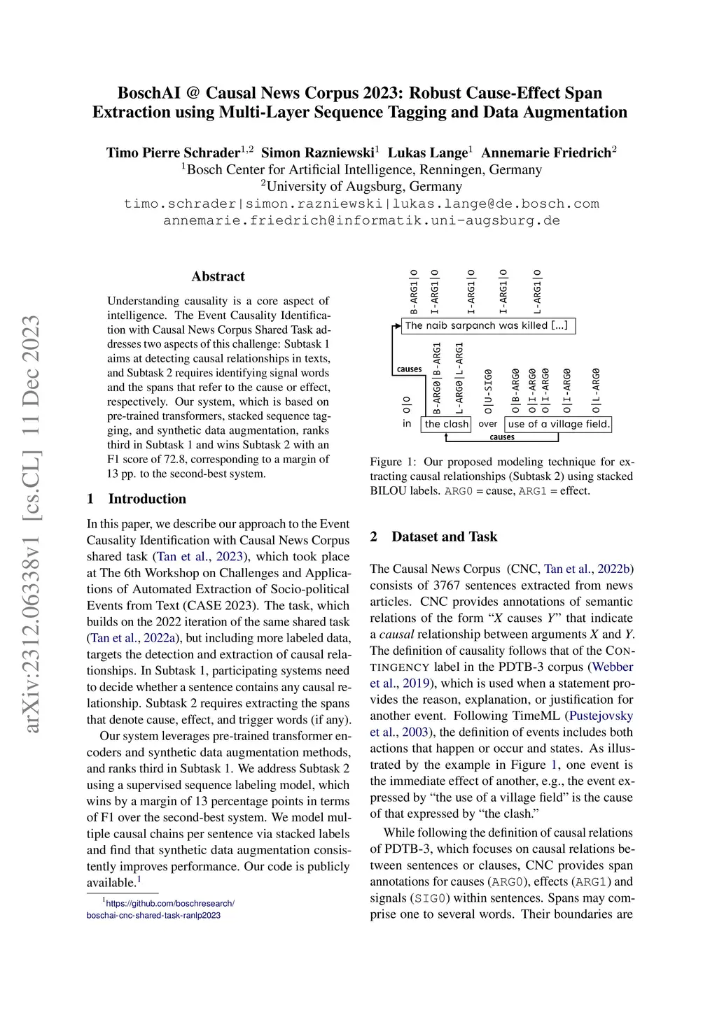 BoschAI @ Causal News Corpus 2023: Robust Cause-Effect Span Extraction