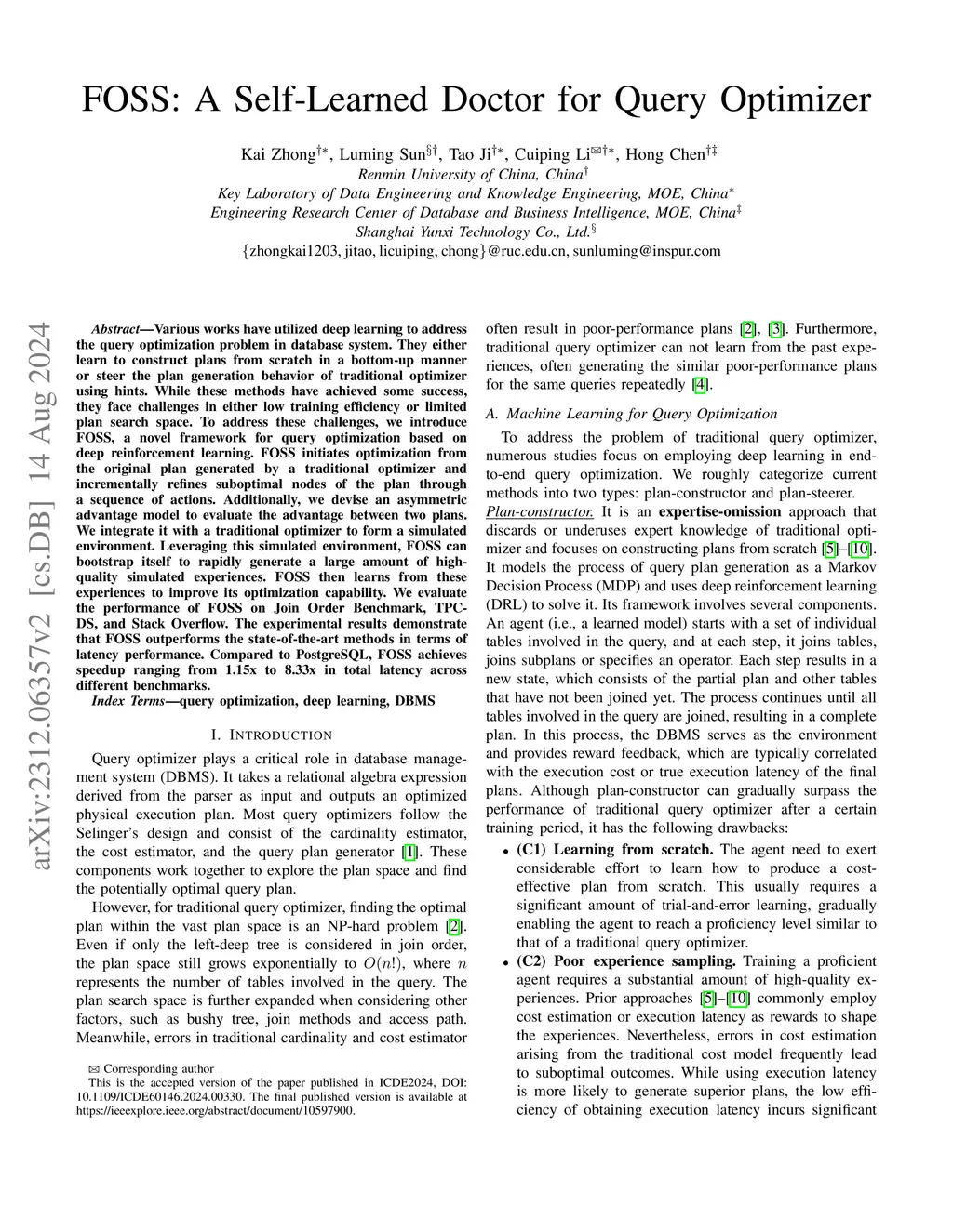 FOSS: A Self-Learned Doctor for Query Optimizer