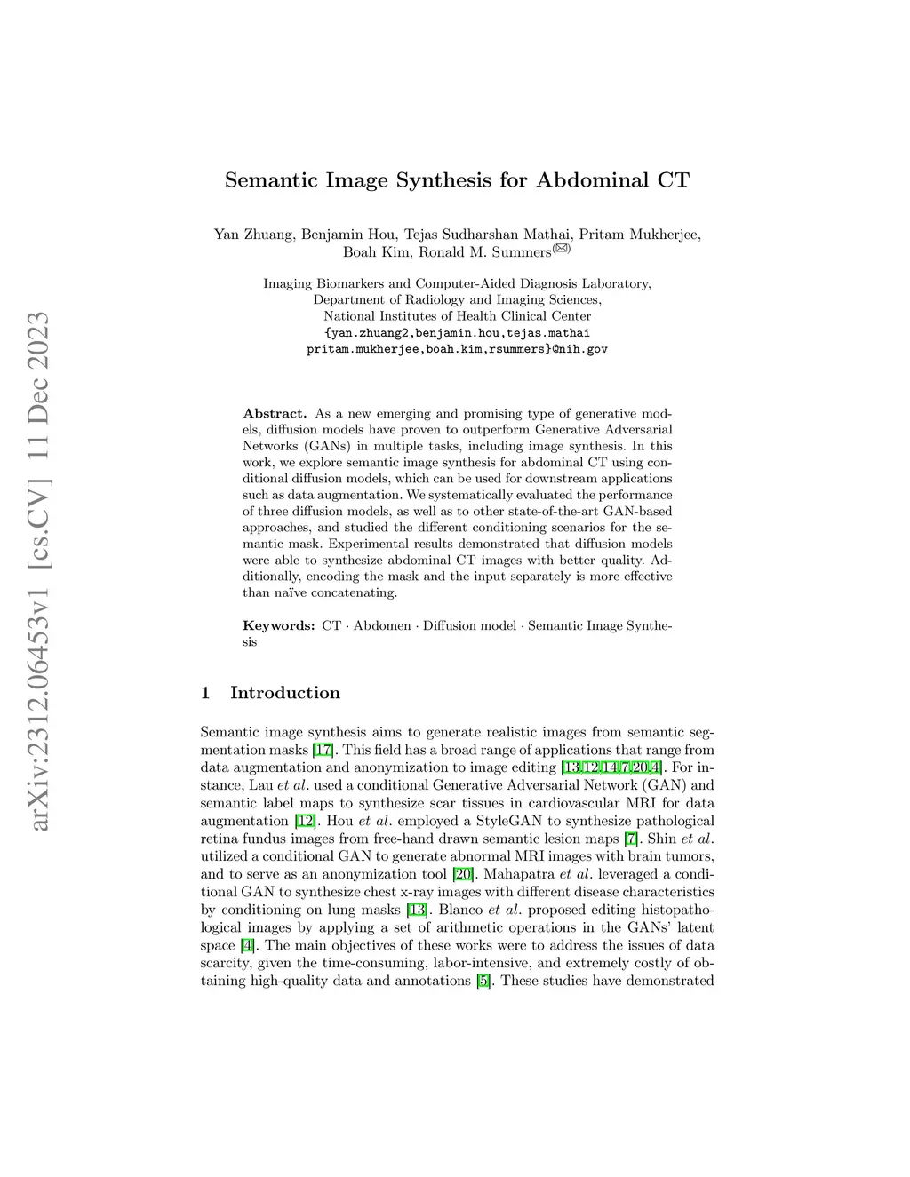 Semantic Image Synthesis for Abdominal CT