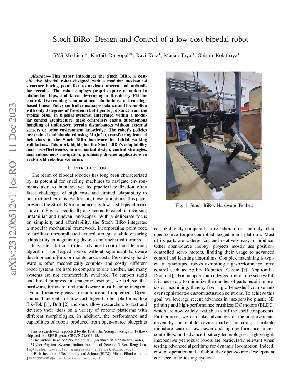 Stoch BiRo: Design and Control of a low cost bipedal robot