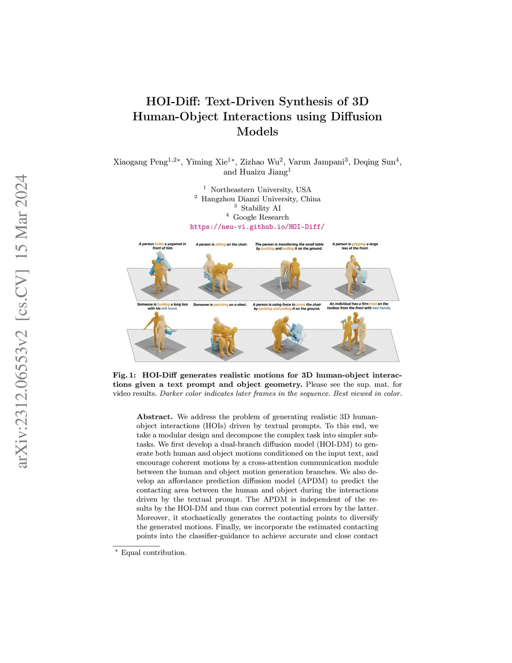 HOI-Diff: Text-Driven Synthesis of 3D Human-Object Interactions using Diffusion Models