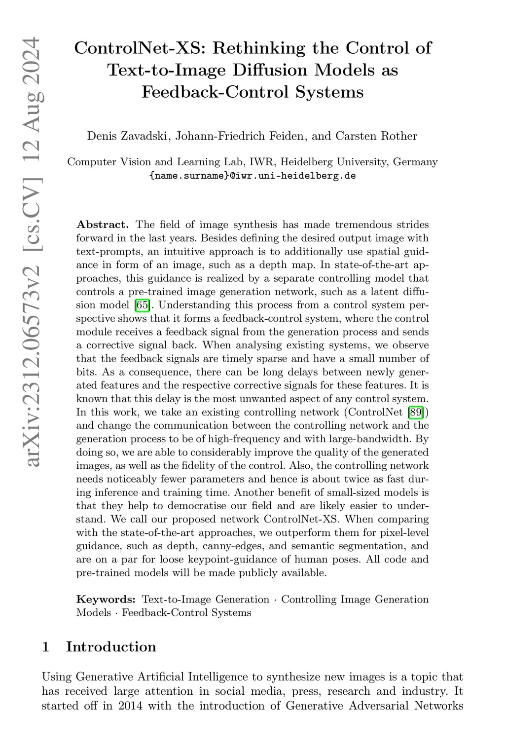 The field of image synthesis has made tremendous strides forward in the last years. Besides defining the desired output image with text-prompts, an intuitive approach is to additionally use spatial guidance in form of an image, such as a depth map. For this, a recent and highly popular approach is to use a controlling network, such as ControlNet, in combination with a pre-trained image generation model, such as Stable Diffusion. When evaluating the design of existing controlling networks, we observe that they all suffer from the same problem of a delay in information flowing between the generation and controlling process. This, in turn, means that the controlling network must have generative capabilities. In this work we propose a new controlling architecture, called ControlNet-XS, which does not suffer from this problem, and hence can focus on the given task of learning to control. In contrast to ControlNet, our model needs only a fraction of parameters, and hence is about twice as fast during inference and training time. Furthermore, the generated images are of higher quality and the control is of higher fidelity. All code and pre-trained models will be made publicly available.