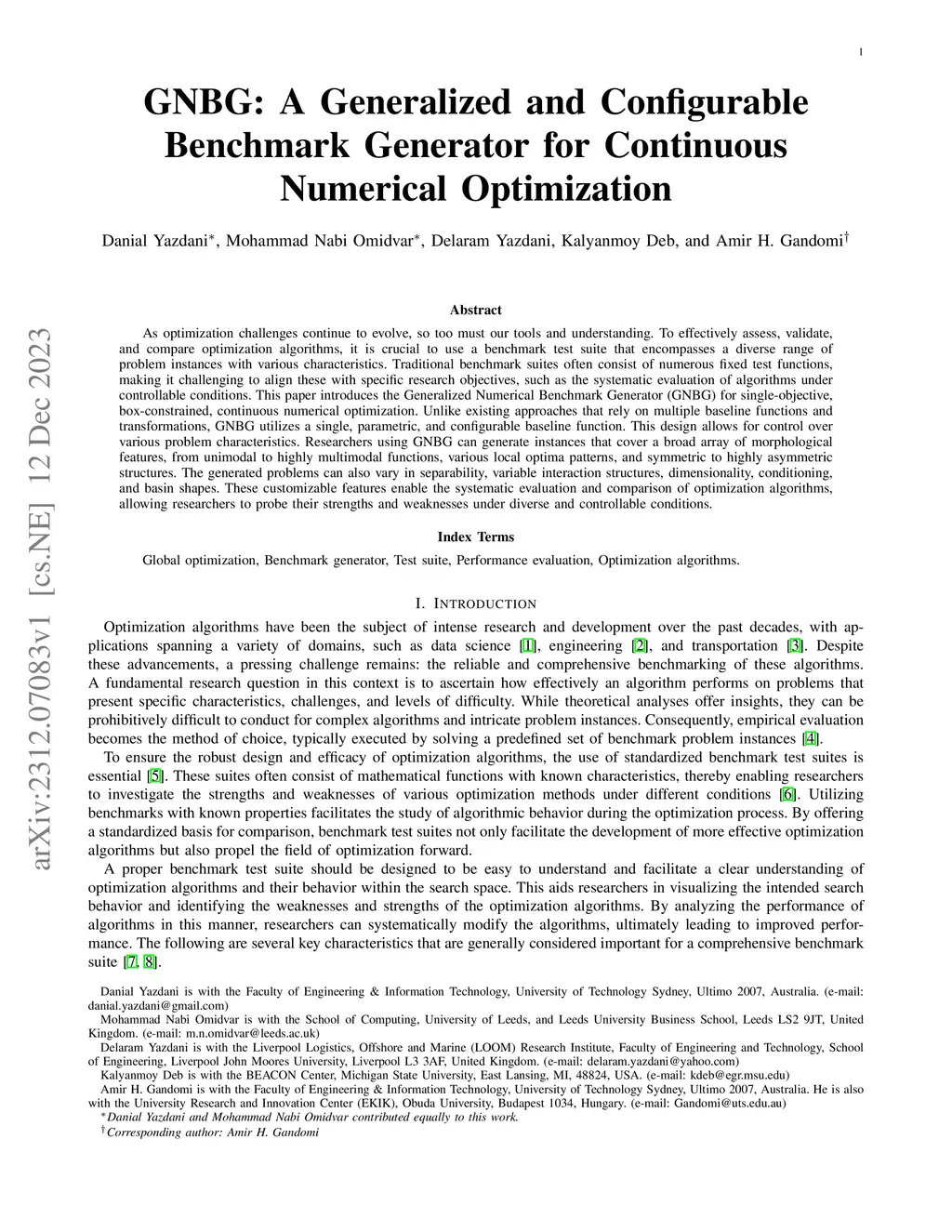 A Generalized and Configurable Benchmark Generator for Continuous Unconstrained Numerical Optimization