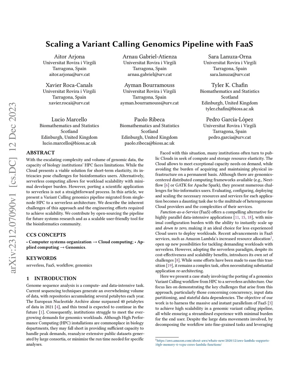 Scaling a Variant Calling Genomics Pipeline with FaaS