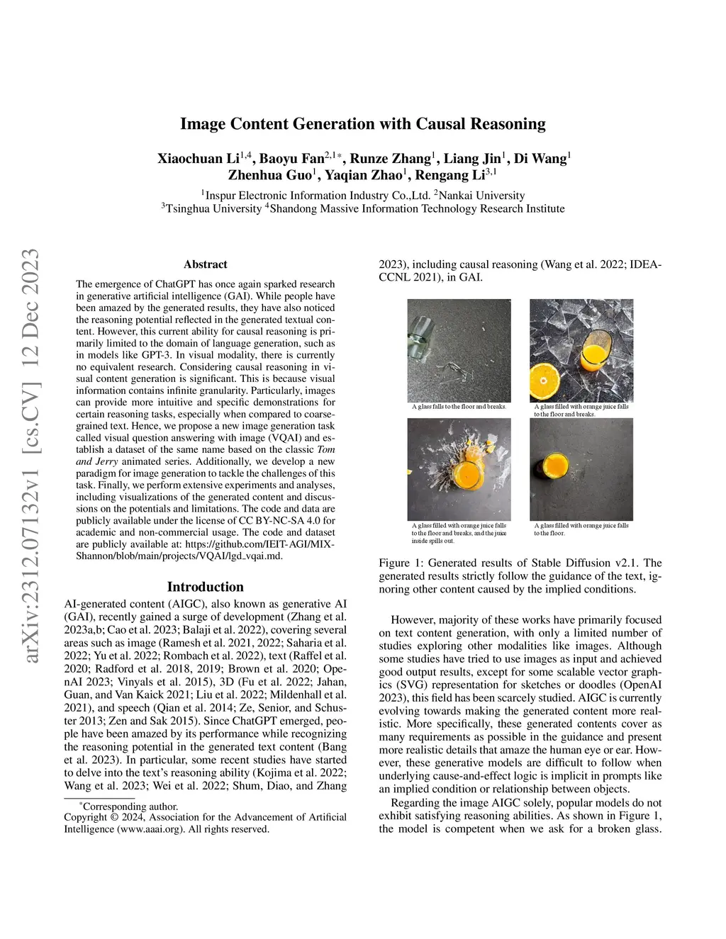 The emergence of ChatGPT has once again sparked research in generative artificial intelligence (GAI). While people have been amazed by the generated results, they have also noticed the reasoning potential reflected in the generated textual content. However, this current ability for causal reasoning is primarily limited to the domain of language generation, such as in models like GPT-3. In visual modality, there is currently no equivalent research. Considering causal reasoning in visual content generation is significant. This is because visual information contains infinite granularity. Particularly, images can provide more intuitive and specific demonstrations for certain reasoning tasks, especially when compared to coarse-grained text. Hence, we propose a new image generation task called visual question answering with image (VQAI) and establish a dataset of the same name based on the classic \textit{Tom and Jerry} animated series. Additionally, we develop a new paradigm for image generation to tackle the challenges of this task. Finally, we perform extensive experiments and analyses, including visualizations of the generated content and discussions on the potentials and limitations. The code and data are publicly available under the license of CC BY-NC-SA 4.0 for academic and non-commercial usage. The code and dataset are publicly available at: https://github.com/IEIT-AGI/MIX-Shannon/blob/main/projects/VQAI/lgd_vqai.md.