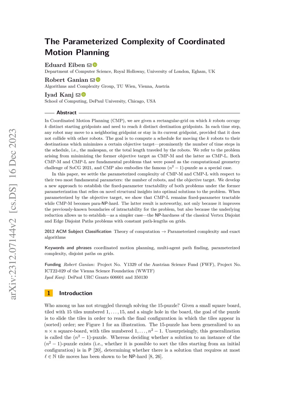 In Coordinated Motion Planning (CMP), we are given a rectangular-grid on which kk robots occupy kk distinct starting gridpoints and need to reach kk distinct destination gridpoints. In each time step, any robot may move to a neighboring gridpoint or stay in its current gridpoint, provided that it does not collide with other robots. The goal is to compute a schedule for moving the kk robots to their destinations which minimizes a certain objective target - prominently the number of time steps in the schedule, i.e., the makespan, or the total length traveled by the robots. We refer to the problem arising from minimizing the former objective target as CMP-M and the latter as CMP-L. Both CMP-M and CMP-L are fundamental problems that were posed as the computational geometry challenge of SoCG 2021, and CMP also embodies the famous (n21)(n^2-1)-puzzle as a special case. In this paper, we settle the parameterized complexity of CMP-M and CMP-L with respect to their two most fundamental parameters: the number of robots, and the objective target. We develop a new approach to establish the fixed-parameter tractability of both problems under the former parameterization that relies on novel structural insights into optimal solutions to the problem. When parameterized by the objective target, we show that CMP-L remains fixed-parameter tractable while CMP-M becomes para-NP-hard. The latter result is noteworthy, not only because it improves the previously-known boundaries of intractability for the problem, but also because the underlying reduction allows us to establish - as a simpler case - the NP-hardness of the classical Vertex Disjoint and Edge Disjoint Paths problems with constant path-lengths on grids.
