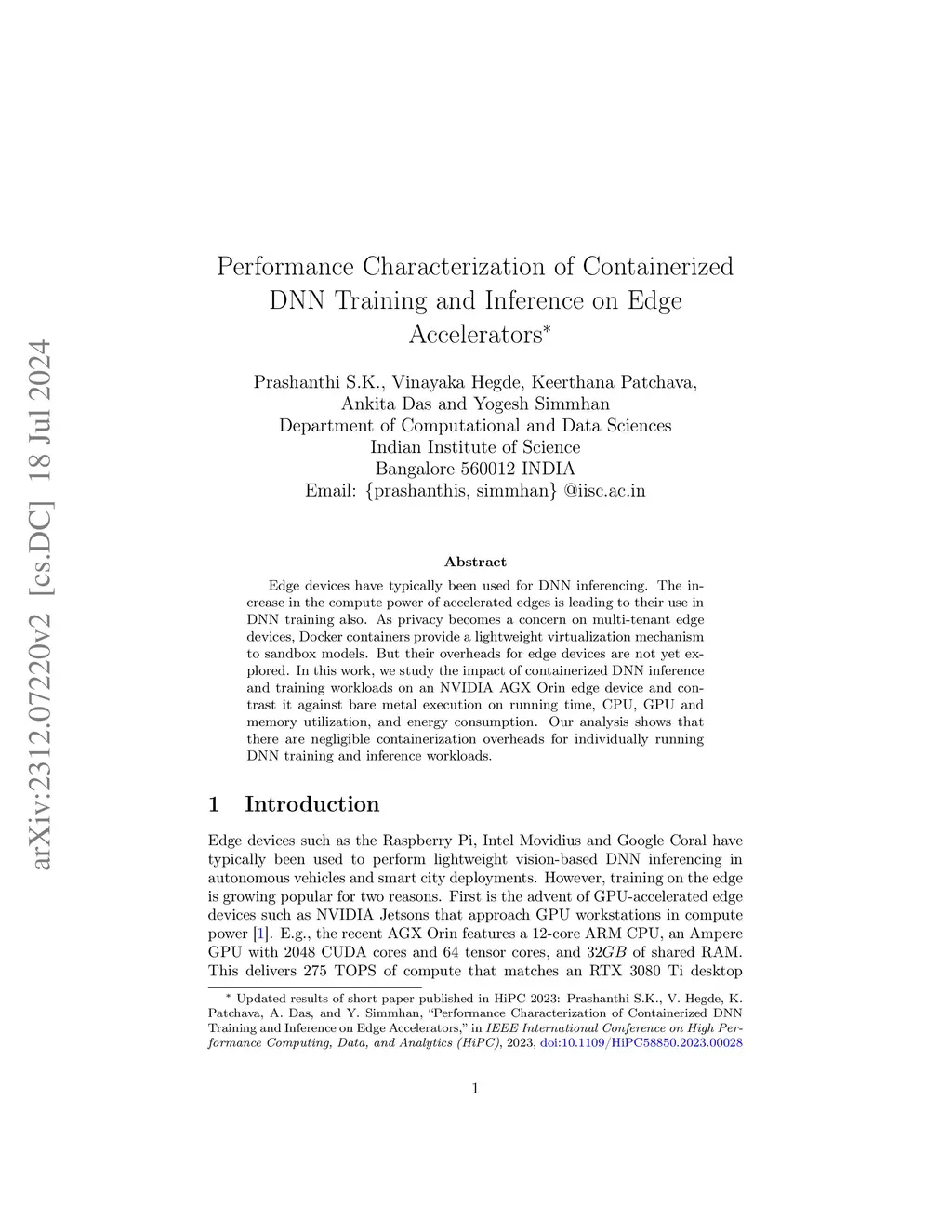 Edge devices have typically been used for DNN inferencing. The increase in the compute power of accelerated edges is leading to their use in DNN training also. As privacy becomes a concern on multi-tenant edge devices, Docker containers provide a lightweight virtualization mechanism to sandbox models. But their overheads for edge devices are not yet explored. In this work, we study the impact of containerized DNN inference and training workloads on an NVIDIA AGX Orin edge device and contrast it against bare metal execution on running time, CPU, GPU and memory utilization, and energy consumption. Our analysis shows that there are negligible containerization overheads for individually running DNN training and inference workloads.