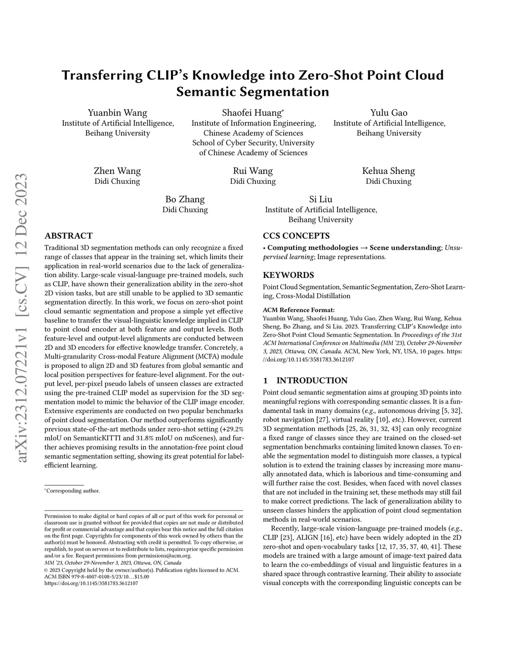 Transferring CLIP's Knowledge into Zero-Shot Point Cloud Semantic