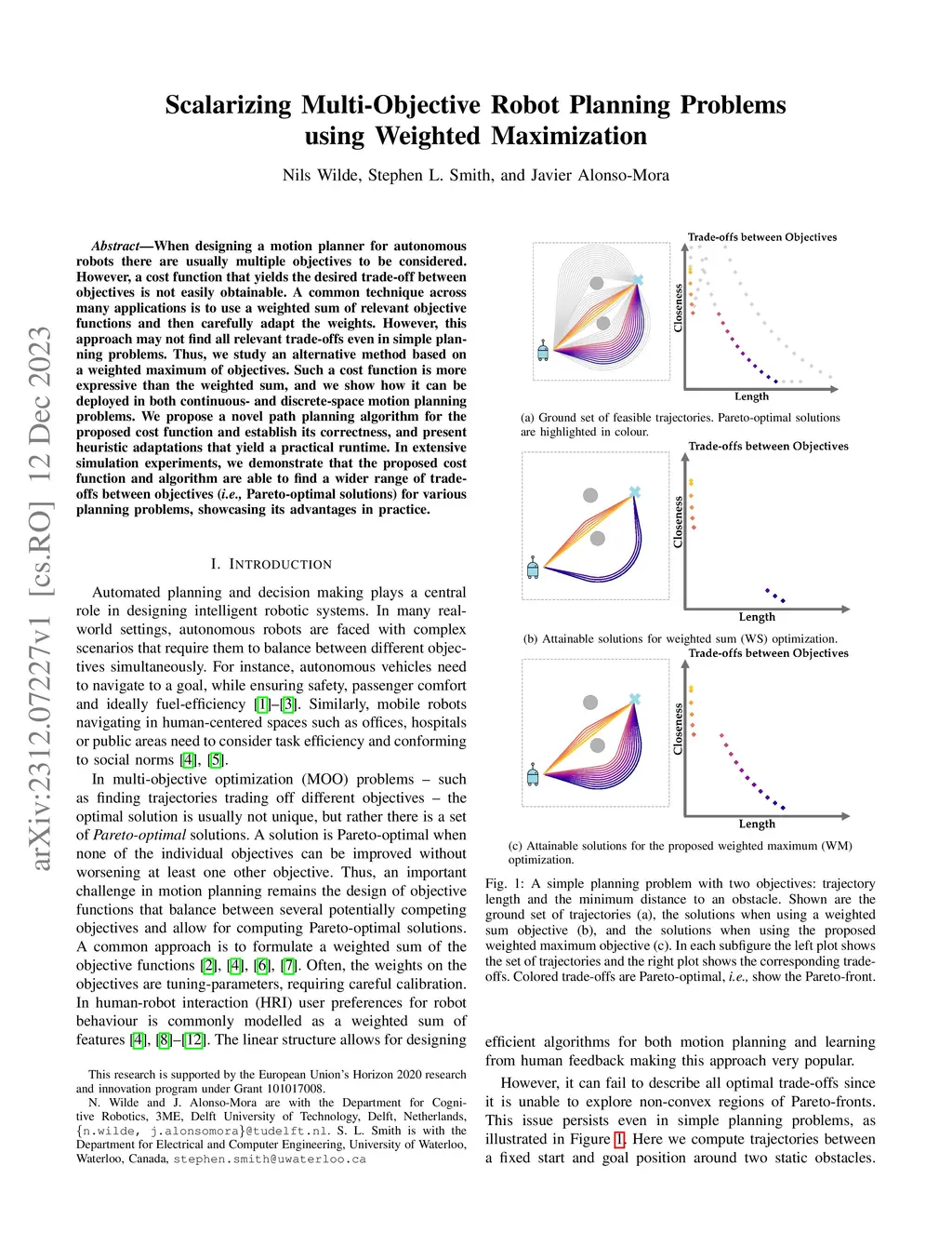 Scalarizing Multi-Objective Robot Planning Problems using Weighted
