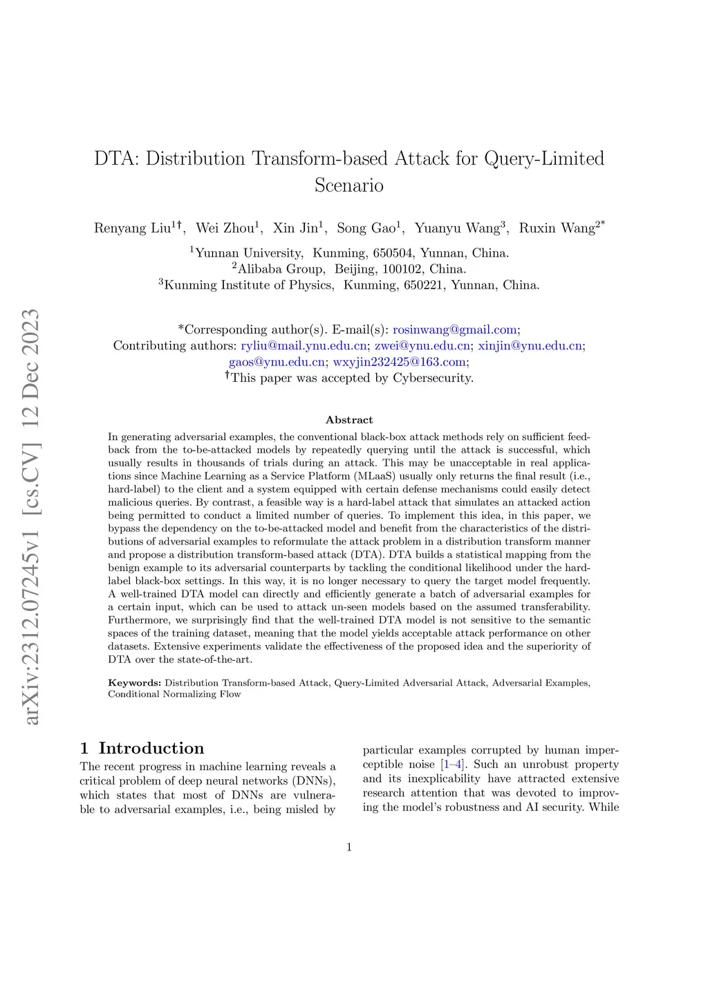 DTA: Distribution Transform-based Attack for Query-Limited Scenario