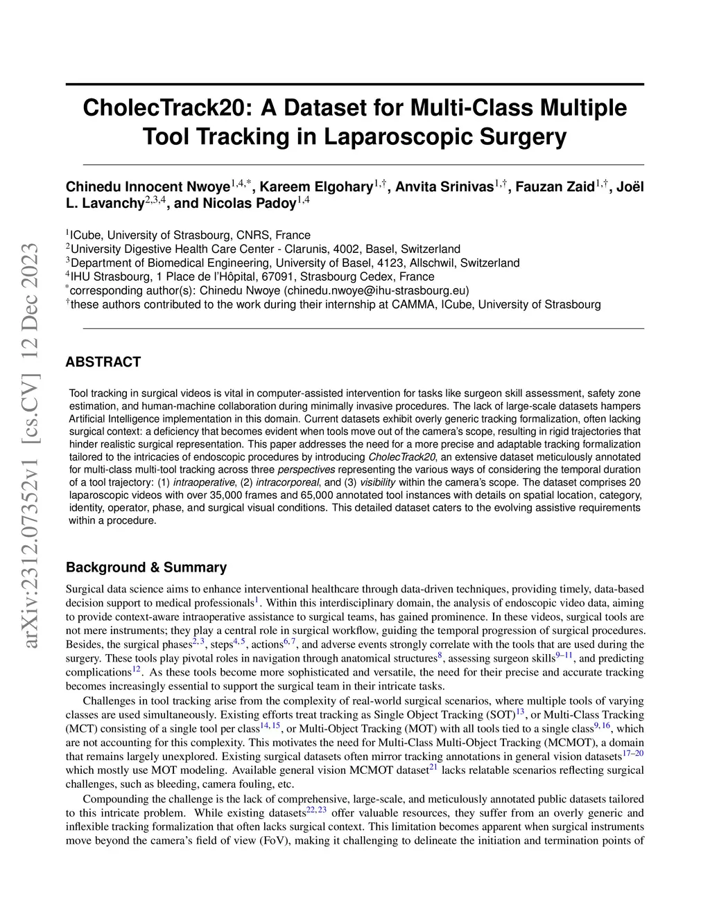 Tool tracking in surgical videos is vital in computer-assisted intervention for tasks like surgeon skill assessment, safety zone estimation, and human-machine collaboration during minimally invasive procedures. The lack of large-scale datasets hampers Artificial Intelligence implementation in this domain. Current datasets exhibit overly generic tracking formalization, often lacking surgical context: a deficiency that becomes evident when tools move out of the camera's scope, resulting in rigid trajectories that hinder realistic surgical representation. This paper addresses the need for a more precise and adaptable tracking formalization tailored to the intricacies of endoscopic procedures by introducing CholecTrack20, an extensive dataset meticulously annotated for multi-class multi-tool tracking across three perspectives representing the various ways of considering the temporal duration of a tool trajectory: (1) intraoperative, (2) intracorporeal, and (3) visibility within the camera's scope. The dataset comprises 20 laparoscopic videos with over 35,000 frames and 65,000 annotated tool instances with details on spatial location, category, identity, operator, phase, and surgical visual conditions. This detailed dataset caters to the evolving assistive requirements within a procedure.