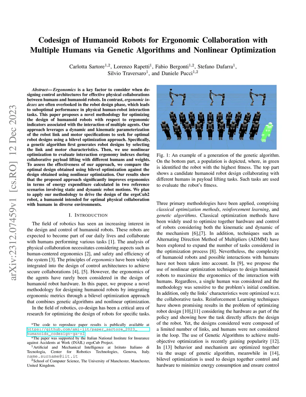 Codesign of Humanoid Robots for Ergonomy Collaboration with Multiple