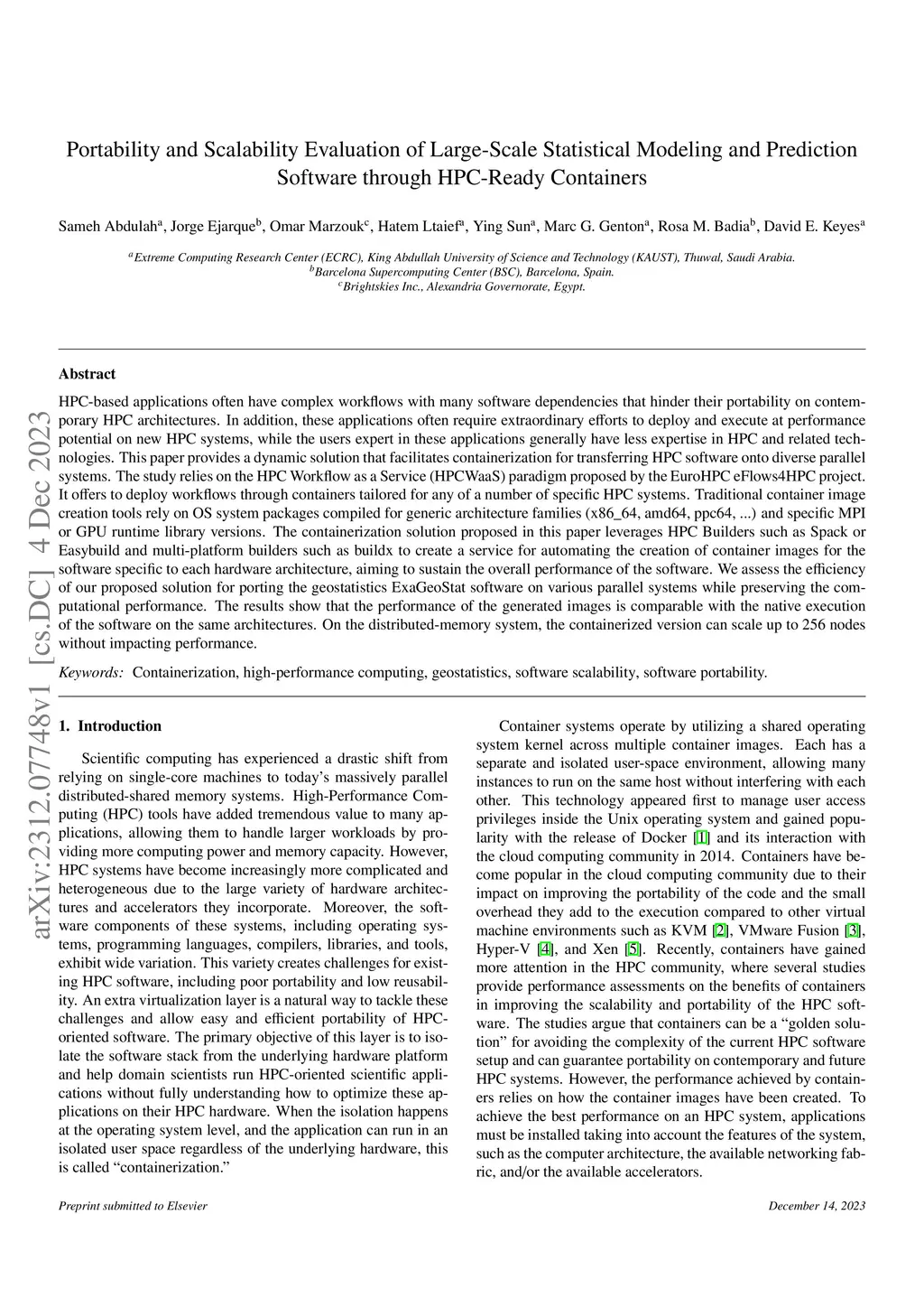 HPC-based applications often have complex workflows with many software dependencies that hinder their portability on contemporary HPC architectures. In addition, these applications often require extraordinary efforts to deploy and execute at performance potential on new HPC systems, while the users expert in these applications generally have less expertise in HPC and related technologies. This paper provides a dynamic solution that facilitates containerization for transferring HPC software onto diverse parallel systems. The study relies on the HPC Workflow as a Service (HPCWaaS) paradigm proposed by the EuroHPC eFlows4HPC project. It offers to deploy workflows through containers tailored for any of a number of specific HPC systems. Traditional container image creation tools rely on OS system packages compiled for generic architecture families (x86\_64, amd64, ppc64, ...) and specific MPI or GPU runtime library versions. The containerization solution proposed in this paper leverages HPC Builders such as Spack or Easybuild and multi-platform builders such as buildx to create a service for automating the creation of container images for the software specific to each hardware architecture, aiming to sustain the overall performance of the software. We assess the efficiency of our proposed solution for porting the geostatistics ExaGeoStat software on various parallel systems while preserving the computational performance. The results show that the performance of the generated images is comparable with the native execution of the software on the same architectures. On the distributed-memory system, the containerized version can scale up to 256 nodes without impacting performance.