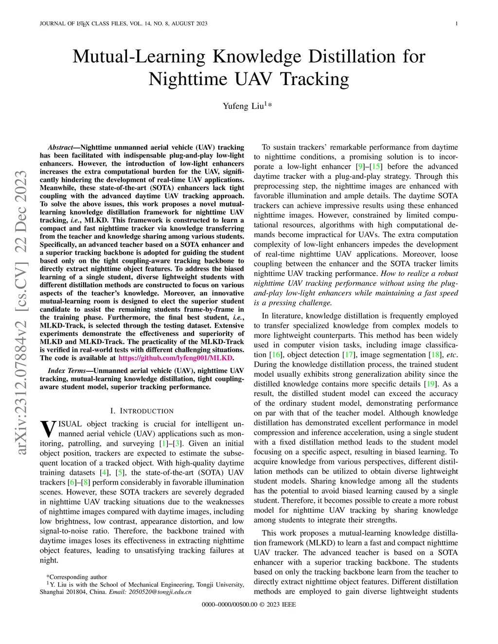 Mutual-Learning Knowledge Distillation for Nighttime UAV Tracking