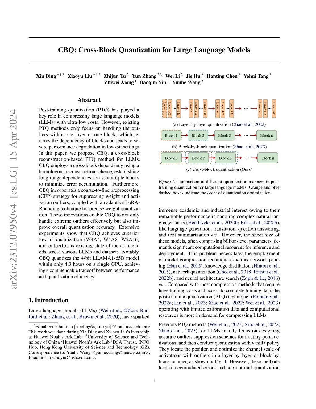CBQ: Cross-Block Quantization for Large Language Models