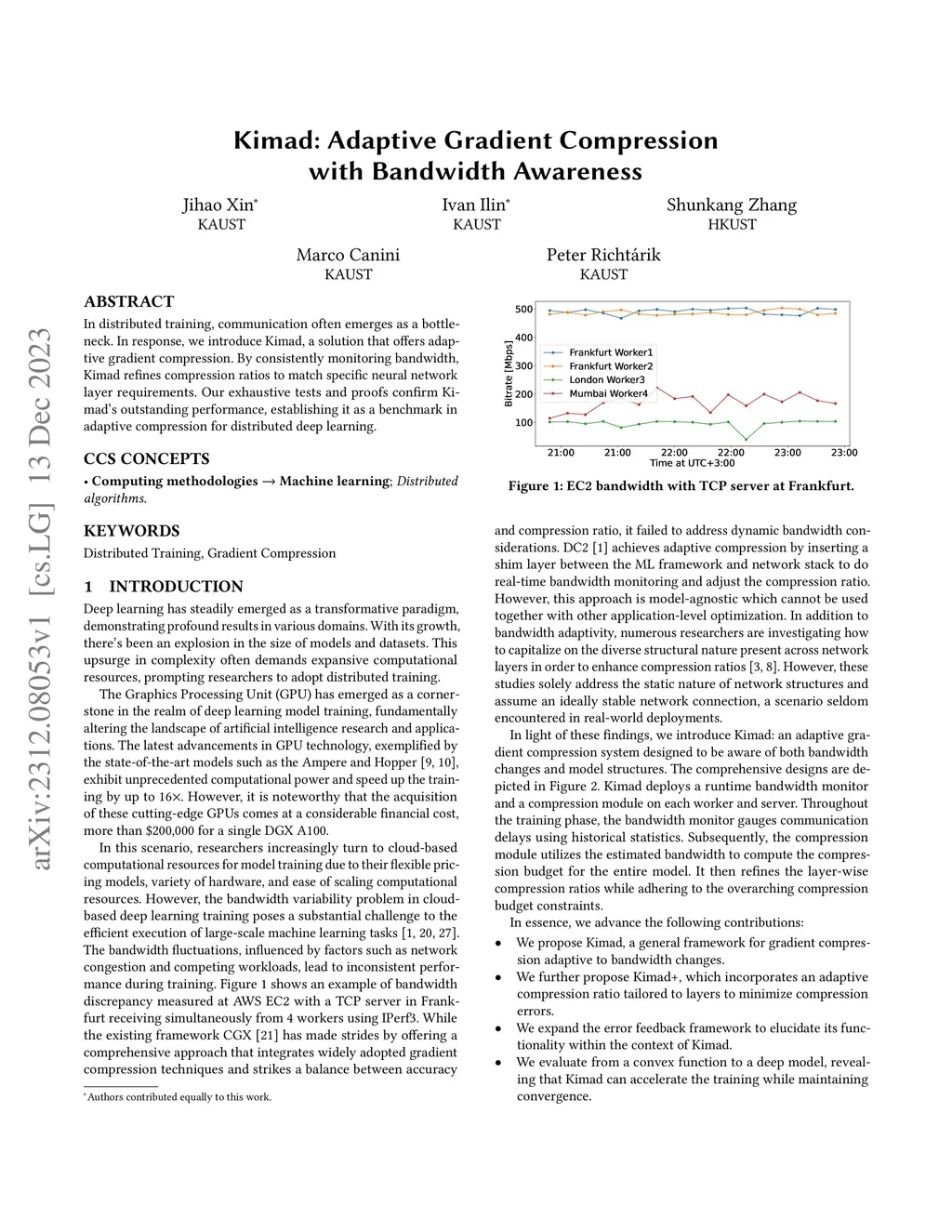 Kimad: Adaptive Gradient Compression with Bandwidth Awareness