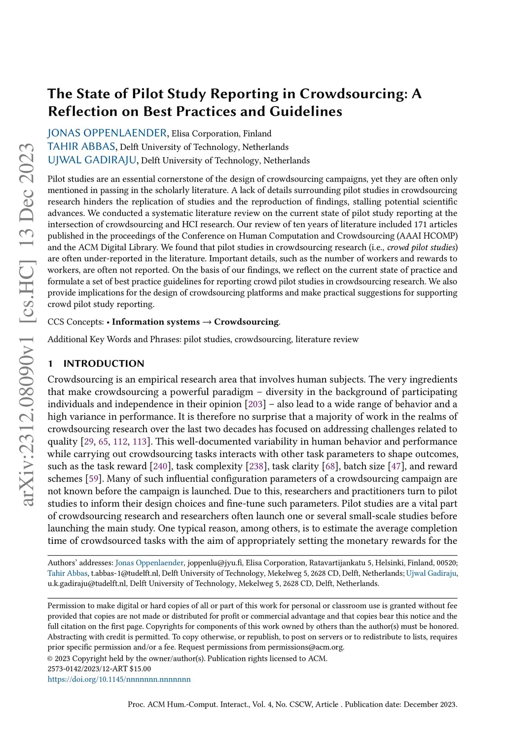 The State of Pilot Study Reporting in Crowdsourcing: A Reflection on