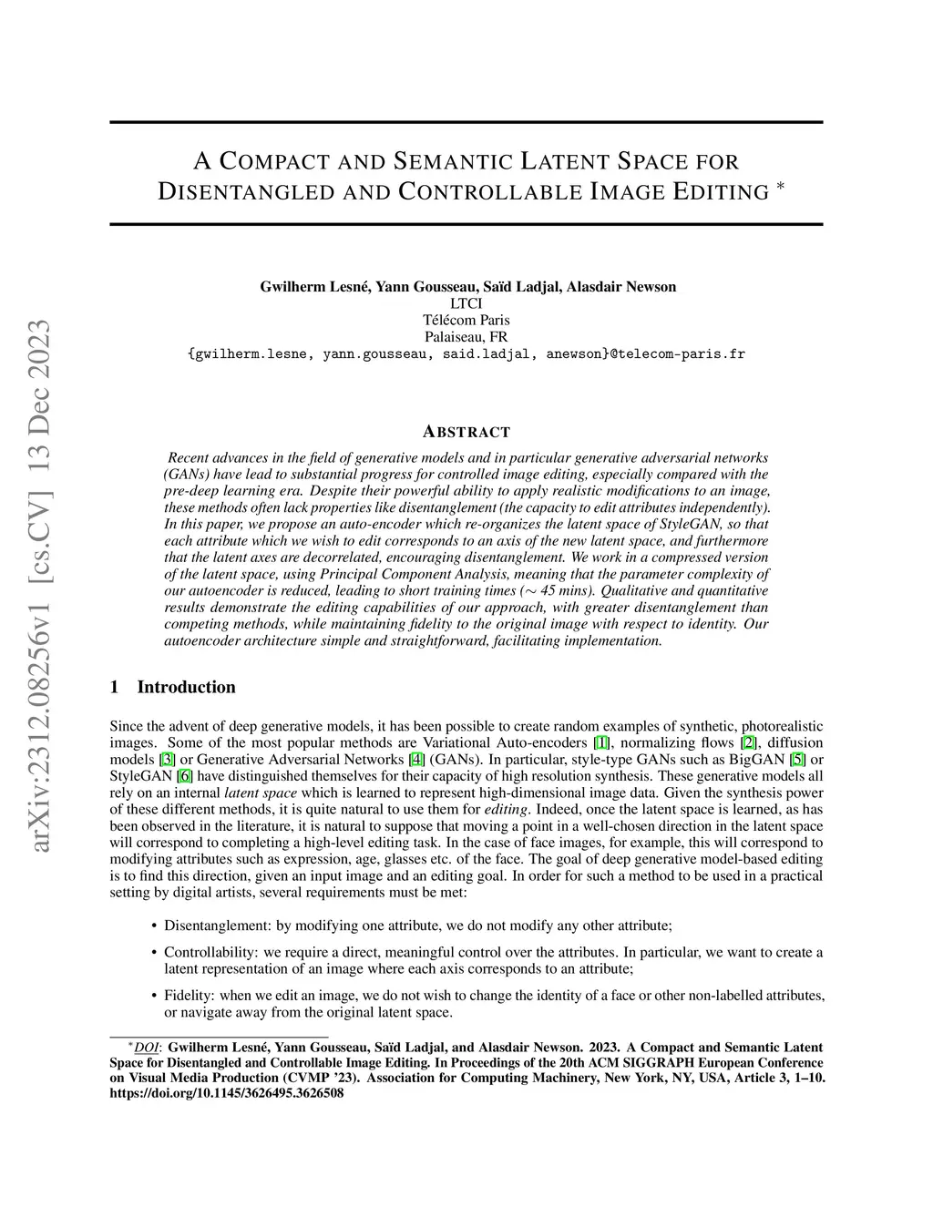 A Compact and Semantic Latent Space for Disentangled and Controllable