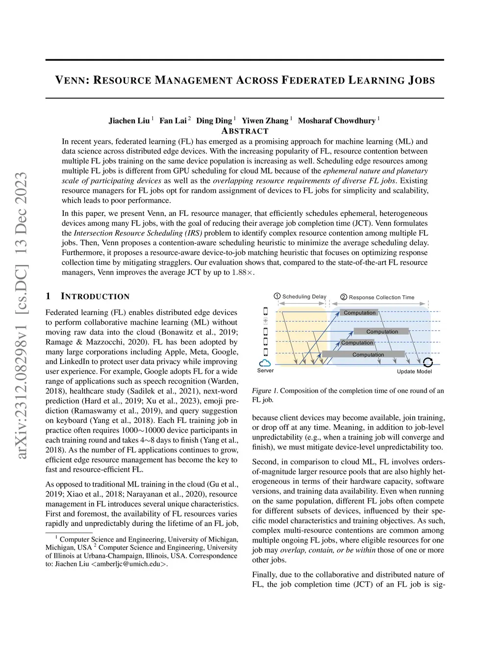 In recent years, collaborative learning (CL) has emerged as a promising approach for machine learning (ML) and data science across distributed edge devices. As the deployment of CL jobs increases, they inevitably contend for limited resources. However, efficient resource scheduling in this context is challenging because of the ephemeral nature and resource heterogeneity of devices, coupled with the overlapping resource requirements of diverse CL jobs. Existing resource managers often assign devices to CL jobs randomly for simplicity and scalability, but this approach compromises job efficiency.In this paper, we present Venn, a CL resource manager that efficiently schedules ephemeral, heterogeneous devices among multiple CL jobs to reduce the average job completion time (JCT). Venn formulates the Intersection Resource Scheduling (IRS) problem to identify complex resource contention among multiple CL jobs. It then proposes a contention-aware scheduling heuristic to minimize the average scheduling delay. Furthermore, it proposes a resource-aware device-to-job matching heuristic to optimize response collection time by mitigating stragglers. Our evaluation shows that, compared to the state-of-the-art CL resource managers, Venn improves the average JCT by up to 1.88x. The code is available atthis https URL.