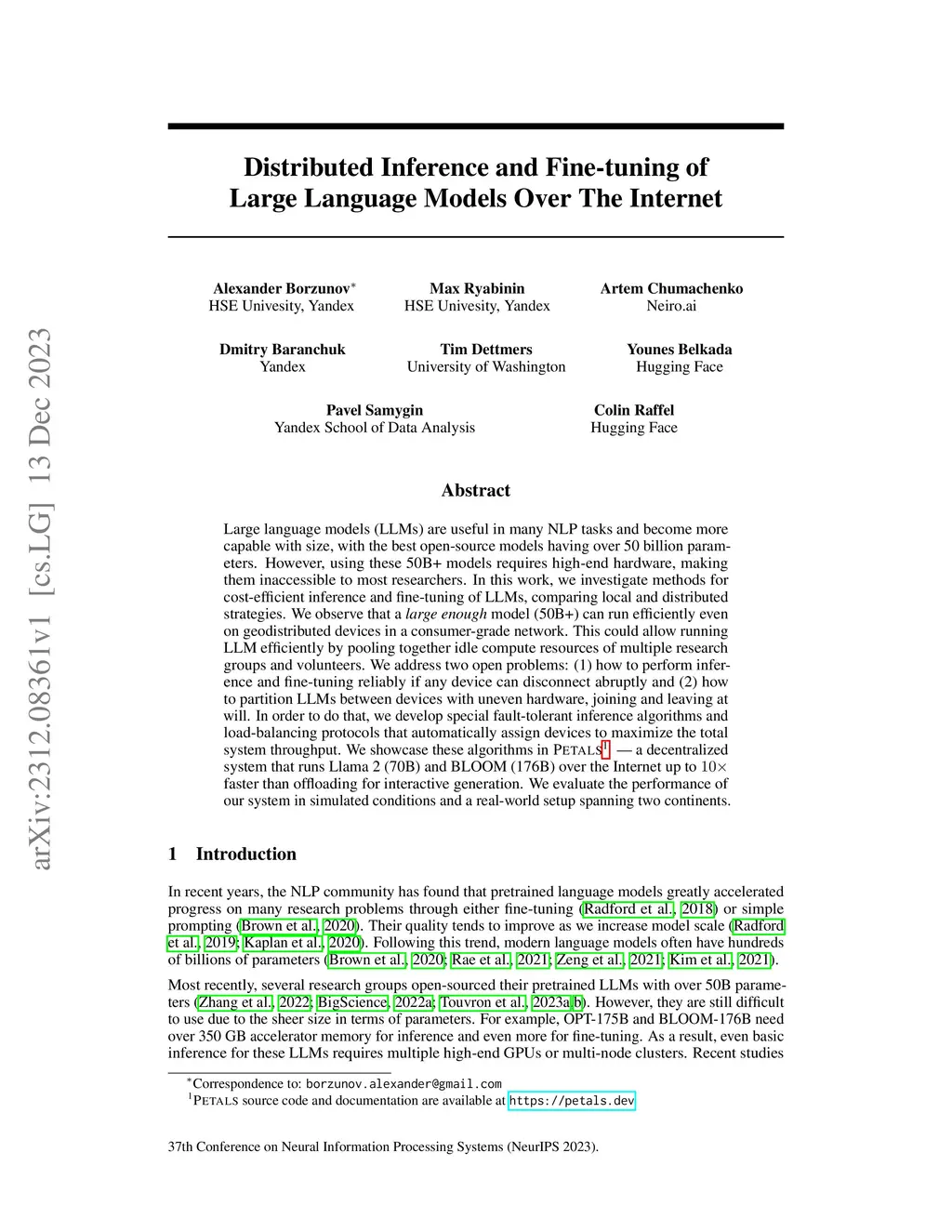 Distributed Inference and Fine-tuning of Large Language Models Over The