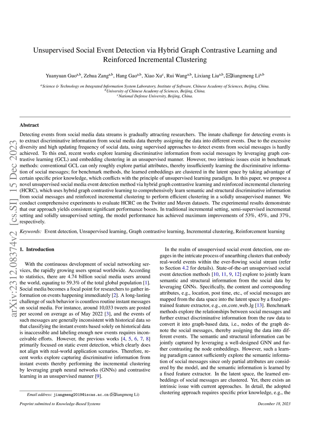 Unsupervised Social Event Detection via Hybrid Graph Contrastive