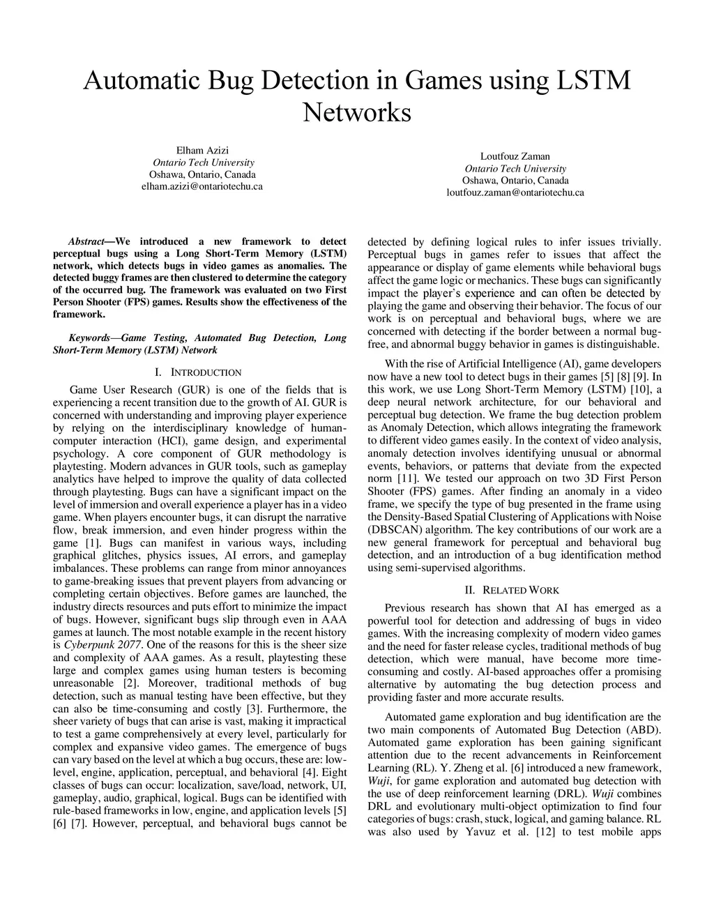 We introduced a new framework to detect perceptual bugs using a Long Short-Term Memory (LSTM) network, which detects bugs in video games as anomalies. The detected buggy frames are then clustered to determine the category of the occurred bug. The framework was evaluated on two First Person Shooter (FPS) games. Results show the effectiveness of the framework.